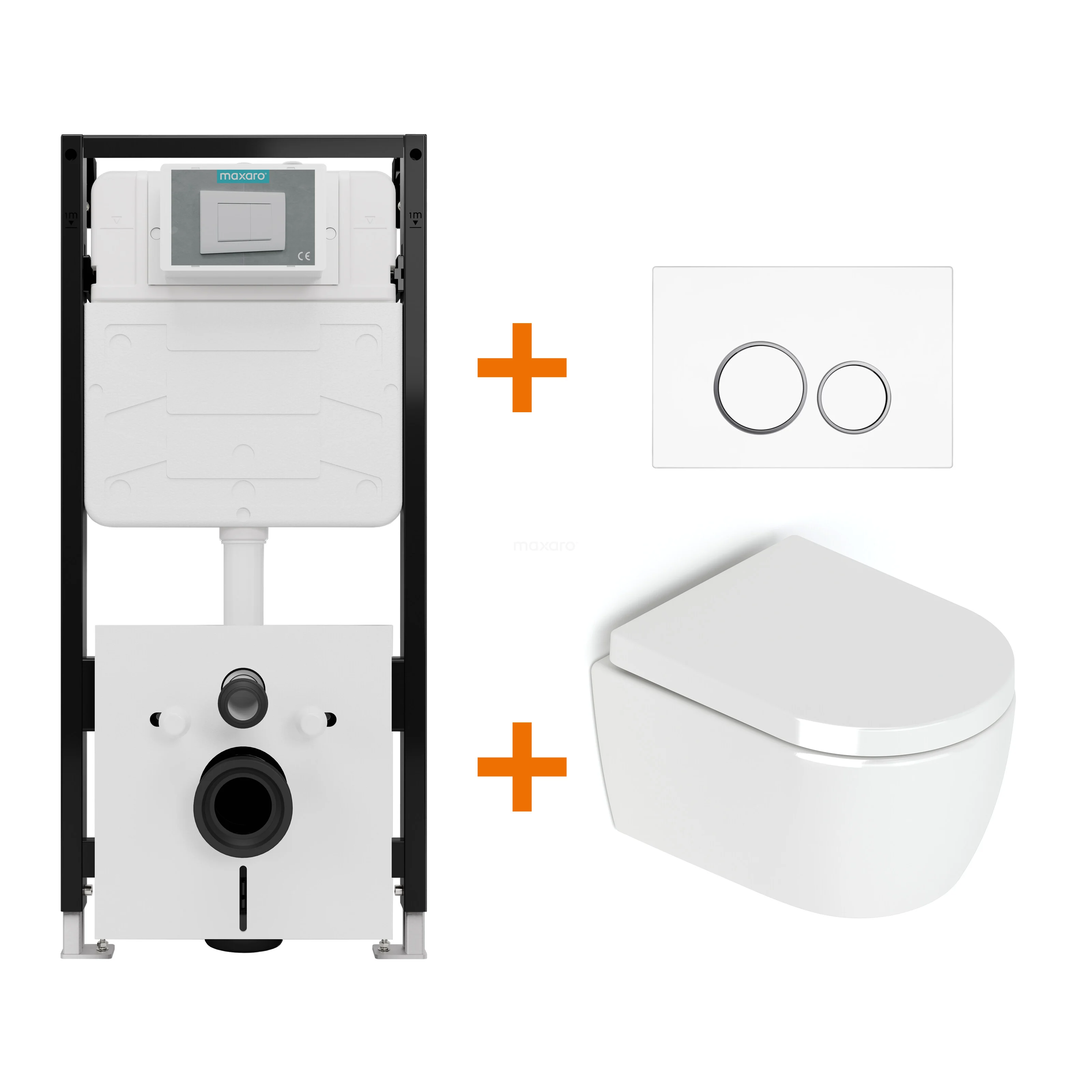 Toilet set High-gloss white without rim + Maxaro Flush Pro concealed cistern with sound insulation
