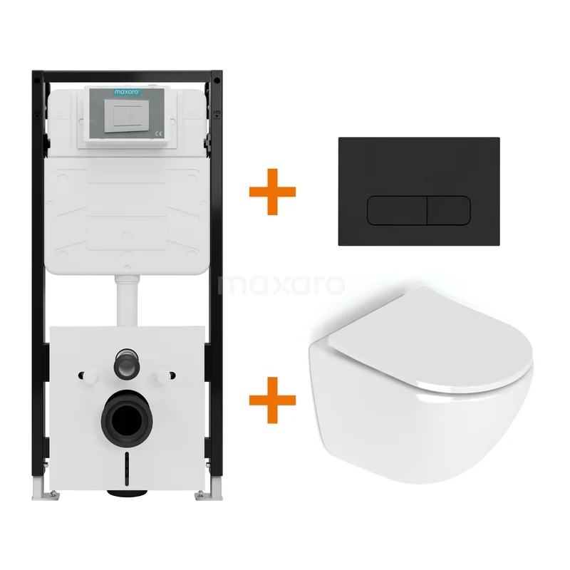 Toilet set High-gloss white without rim + Maxaro Flush Pro concealed cistern with sound insulation