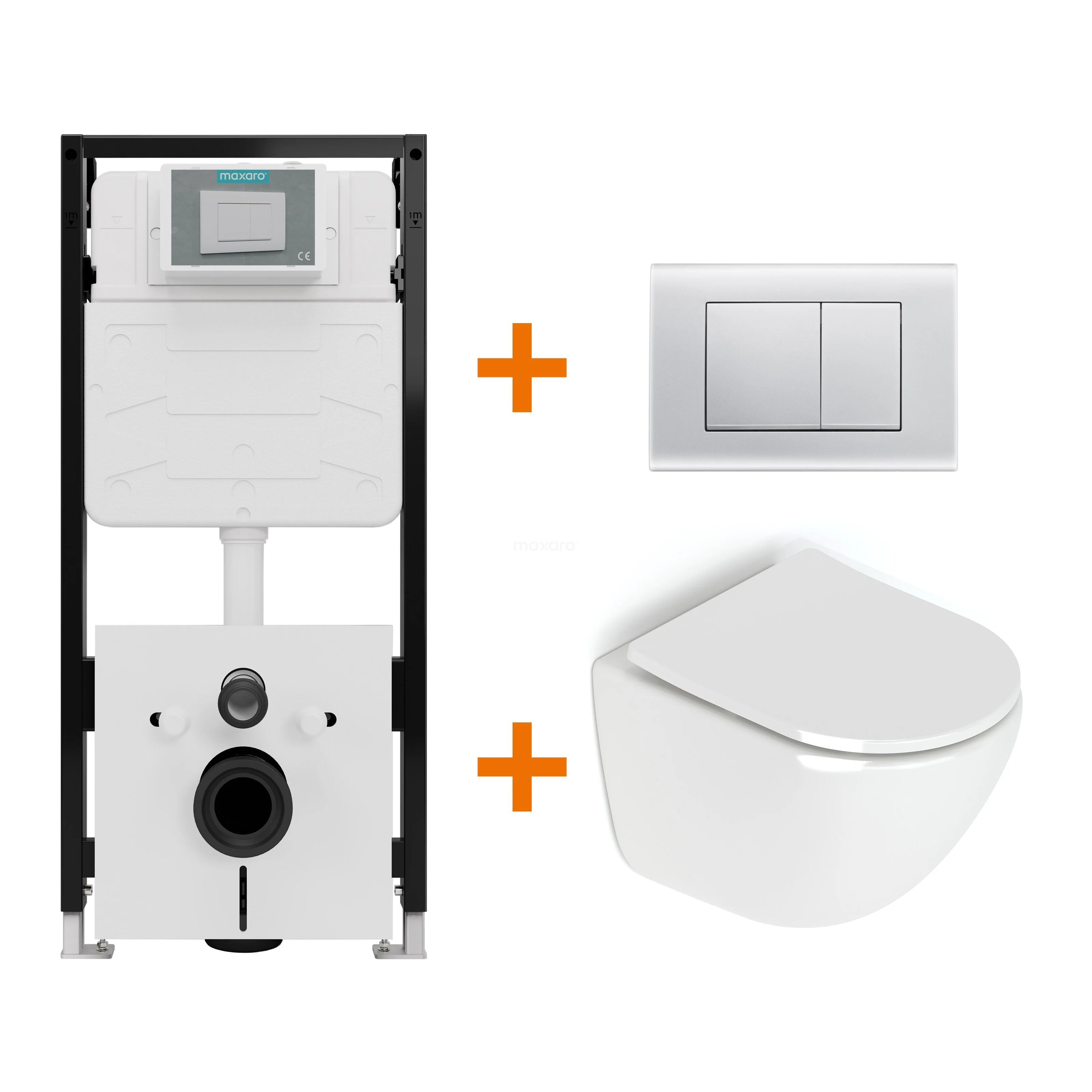Toilet set High-gloss white without rim + Maxaro Flush Pro concealed cistern with sound insulation