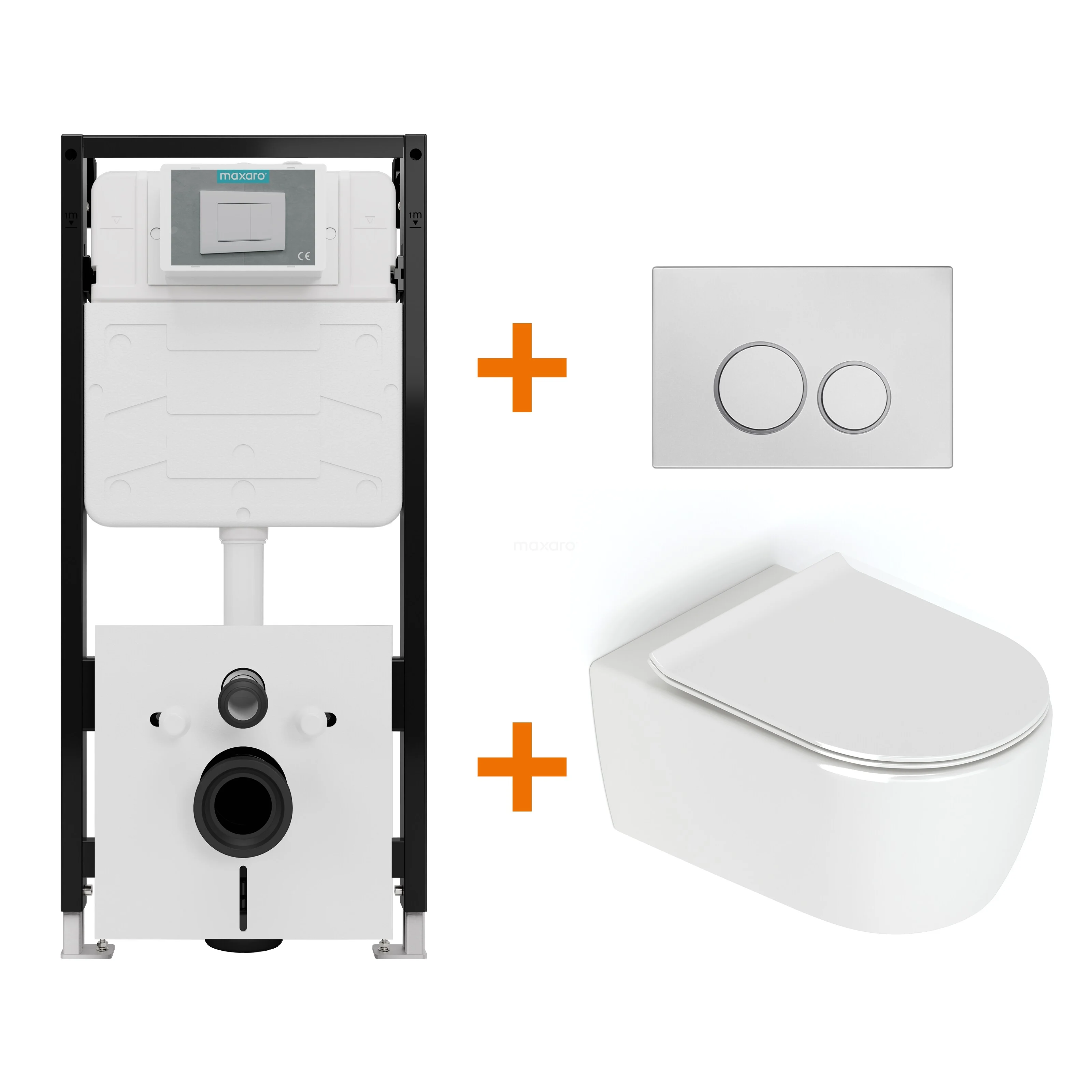 Toilet set High-gloss white without rim + Maxaro Flush Pro concealed cistern with sound insulation