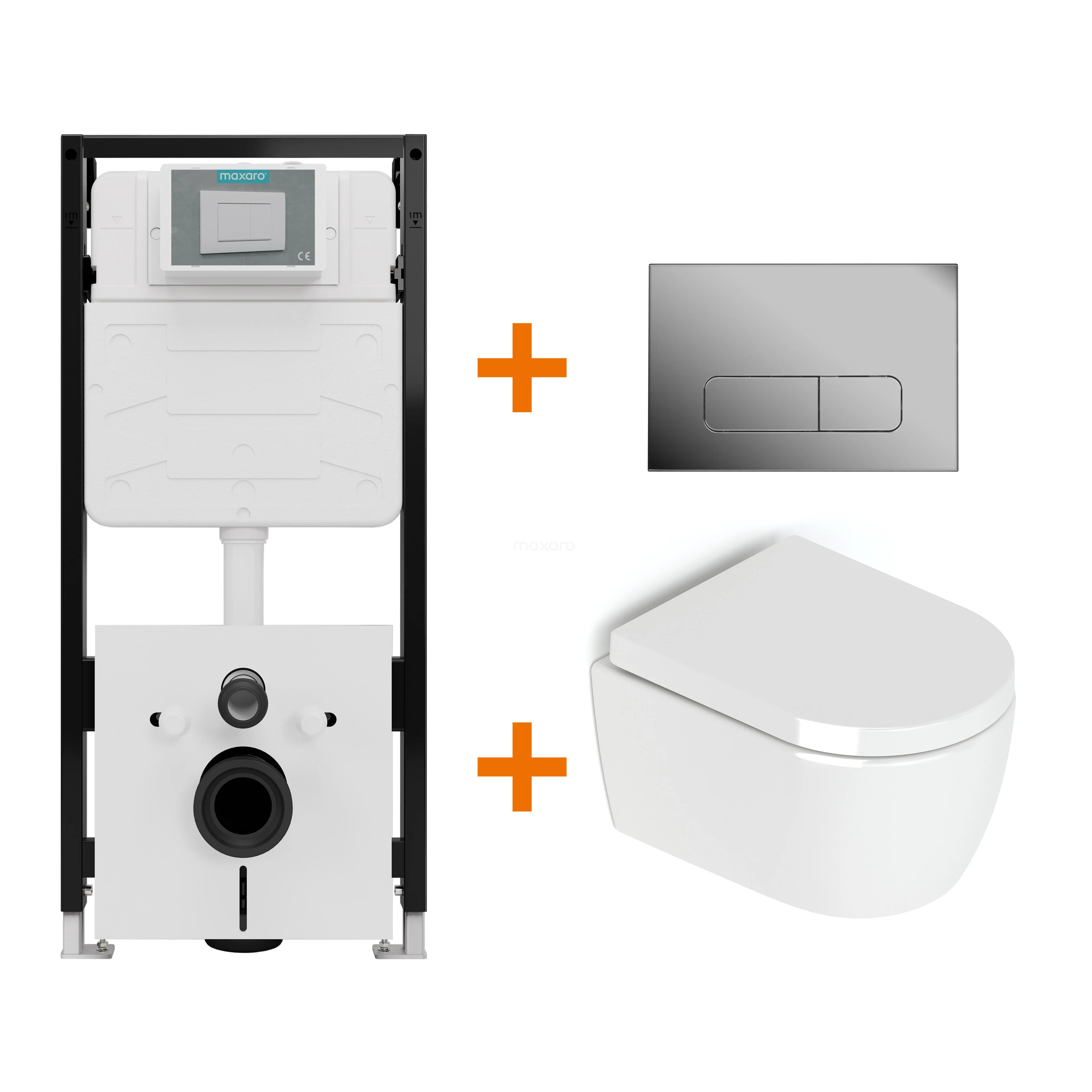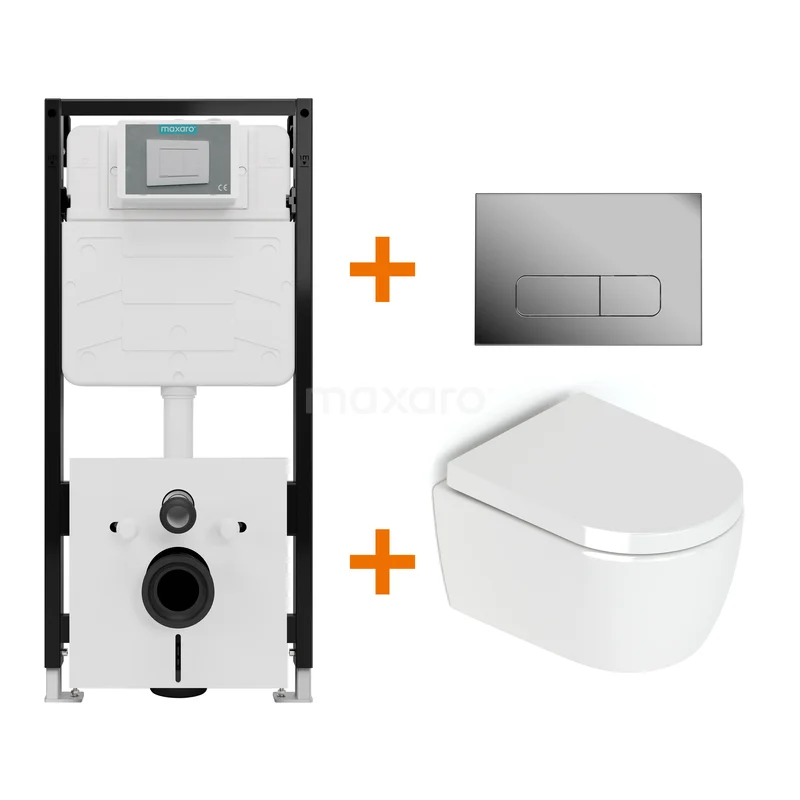 Toilet set High-gloss white without rim + Maxaro Flush Pro concealed cistern with sound insulation