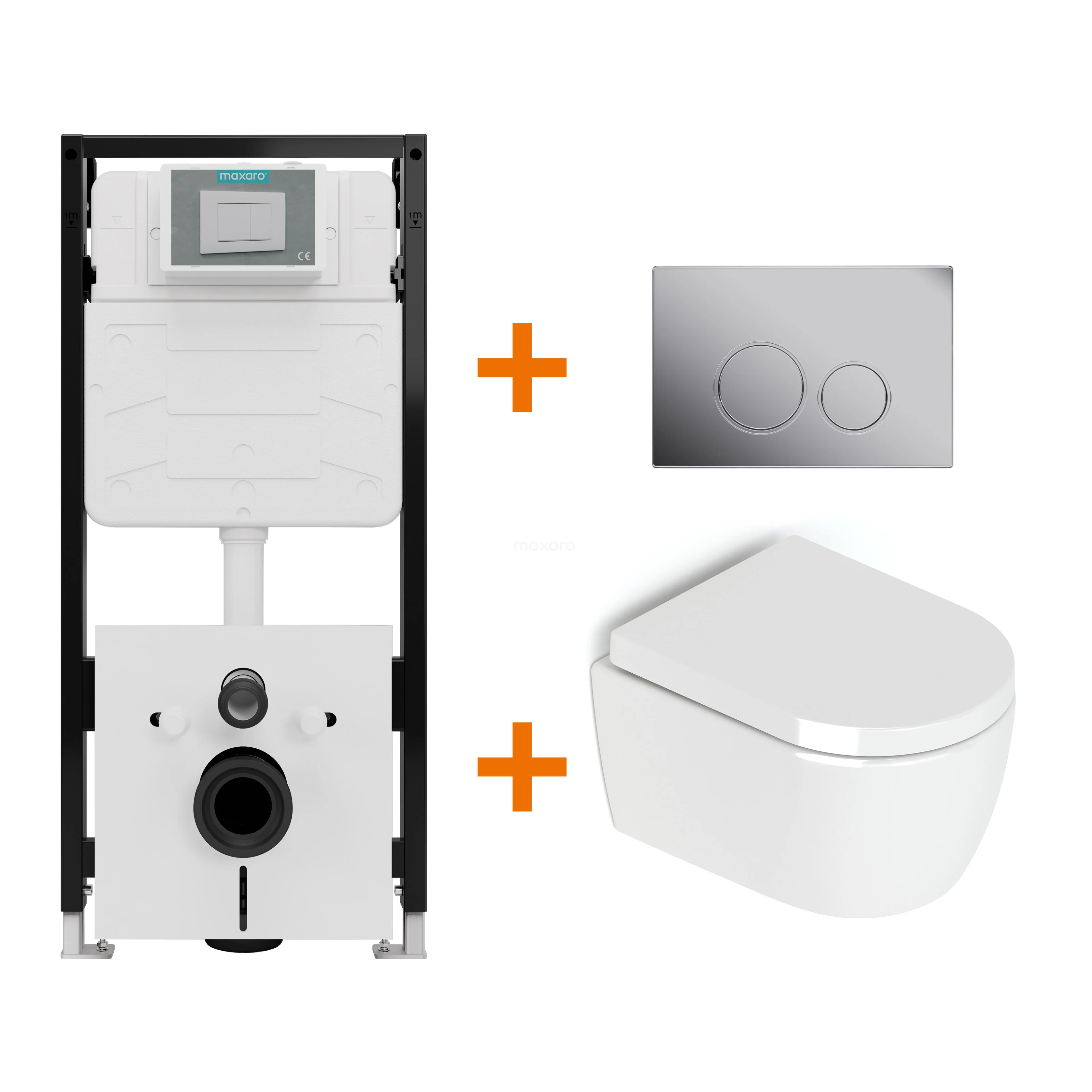 Toilet set High-gloss white without rim + Maxaro Flush Pro concealed cistern with sound insulation
