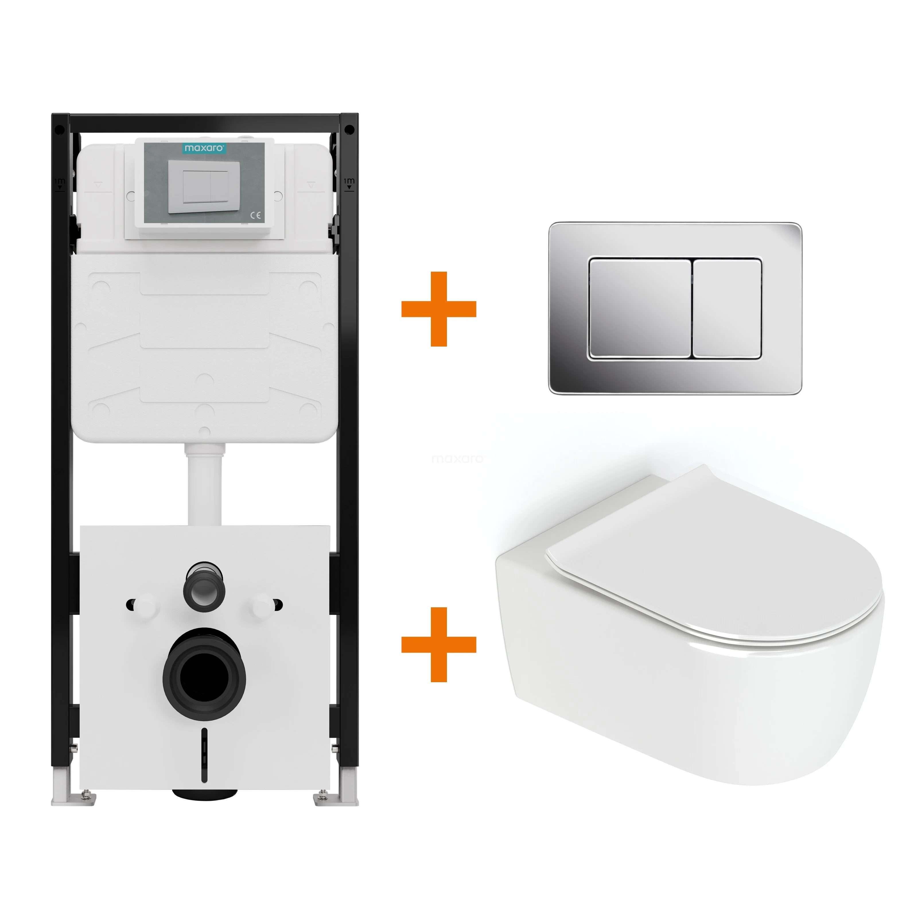 Met deze complete toiletset haal je in één keer alles in huis voor een stijlvol, functioneel en betaalbaar hangtoilet. De set bevat een hoogglans wit Senza hangtoilet, een softclose toiletzitting, het hoogwaardige Maxaro Flush Pro-inbouwreservoir en een strak vormgegeven bedieningspaneel. Dankzij de perfecte afstemming tussen de onderdelen geniet je van optimale prestaties en comfort, zonder onnodige kosten.