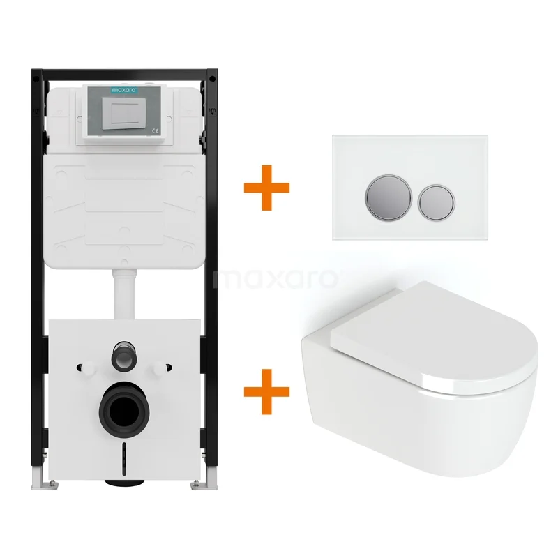 Toilet set High-gloss white without rim + Maxaro Flush Pro concealed cistern with sound insulation