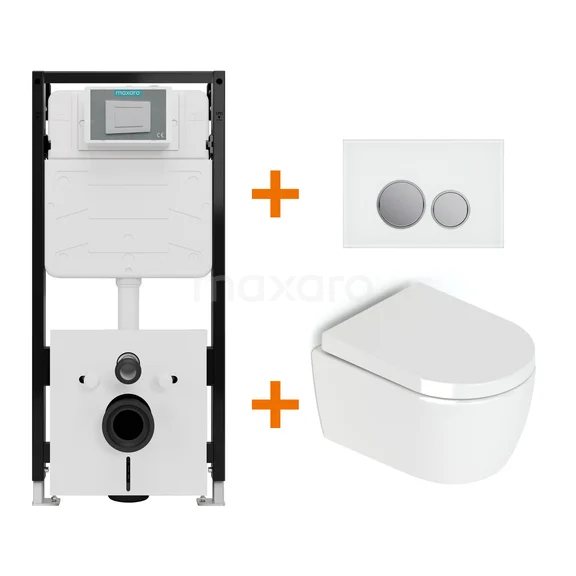 Toilet set High-gloss white without rim + Maxaro Flush Pro concealed cistern with sound insulation