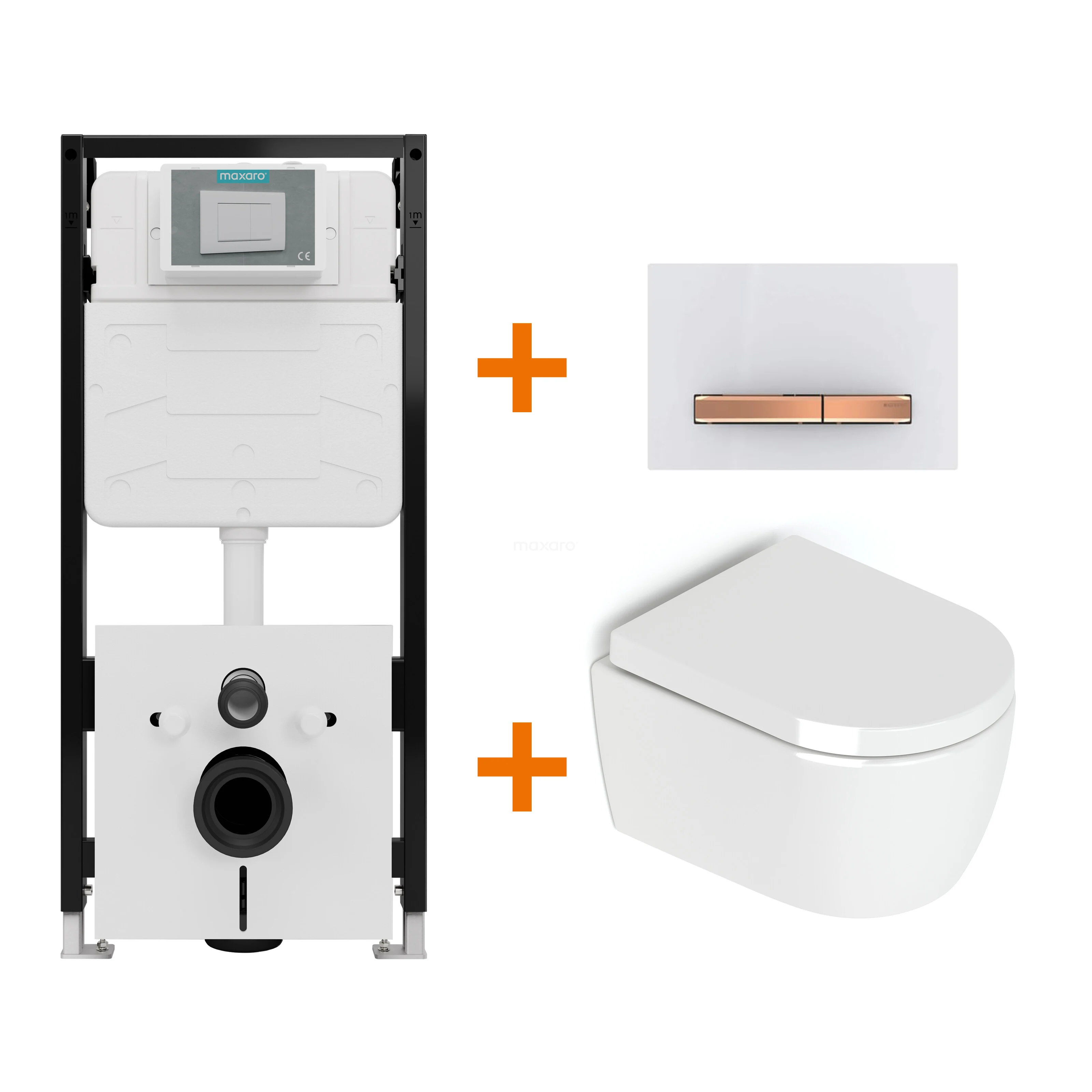 Toilet set High-gloss white without rim + Maxaro Flush Pro concealed cistern with sound insulation