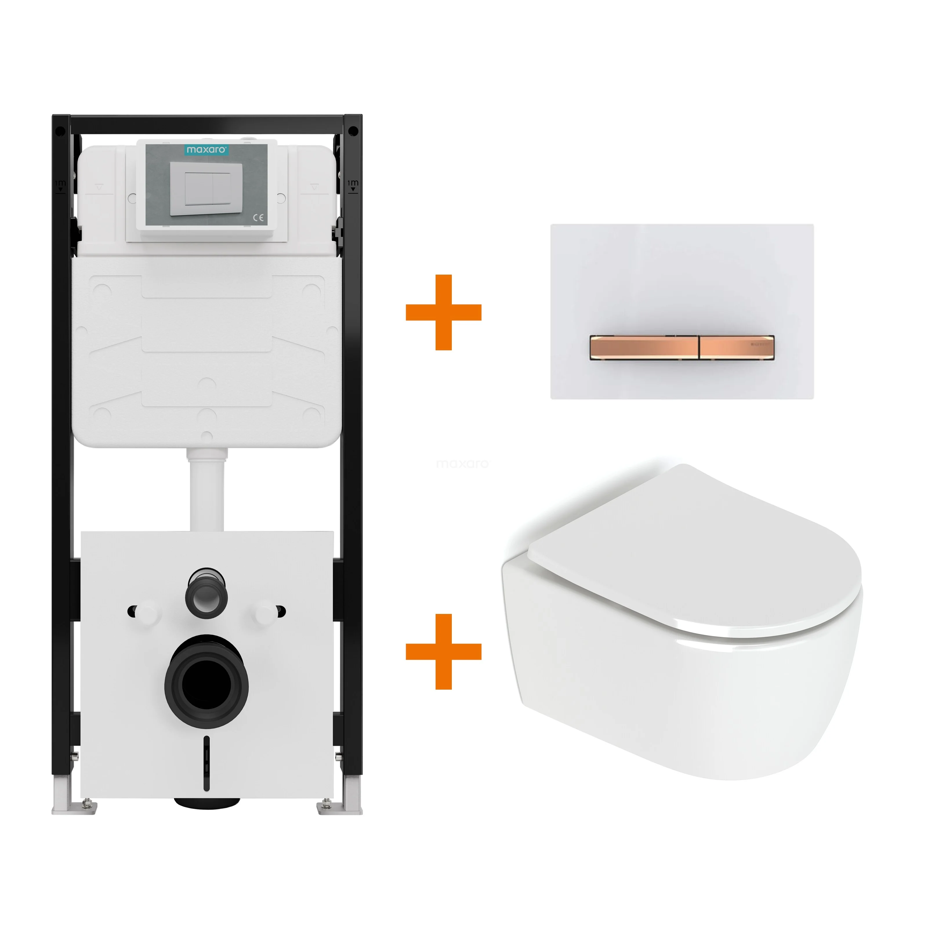 Toilet set High-gloss white without rim + Maxaro Flush Pro concealed cistern with sound insulation