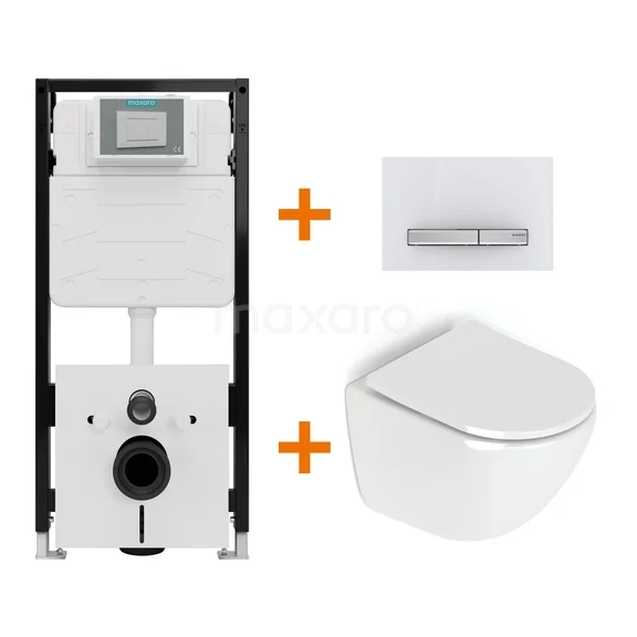 Toilet set High-gloss white without rim + Maxaro Flush Pro concealed cistern with sound insulation