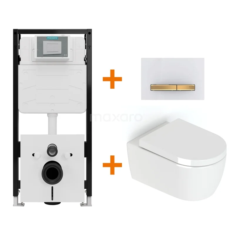 Toilet set High-gloss white without rim + Maxaro Flush Pro concealed cistern with sound insulation