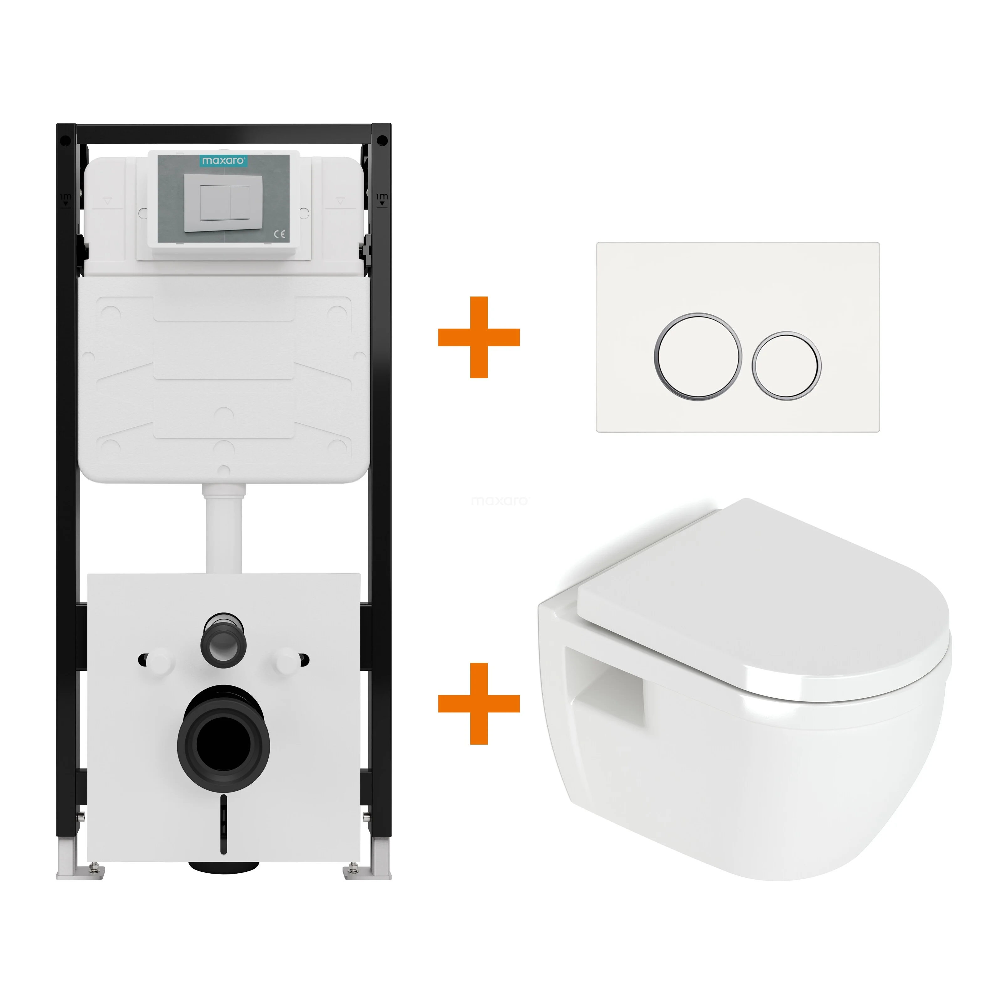 Toilet set High Gloss white without Rim + Maxaro Flush Slim Pro built-in cistern with sound insulation