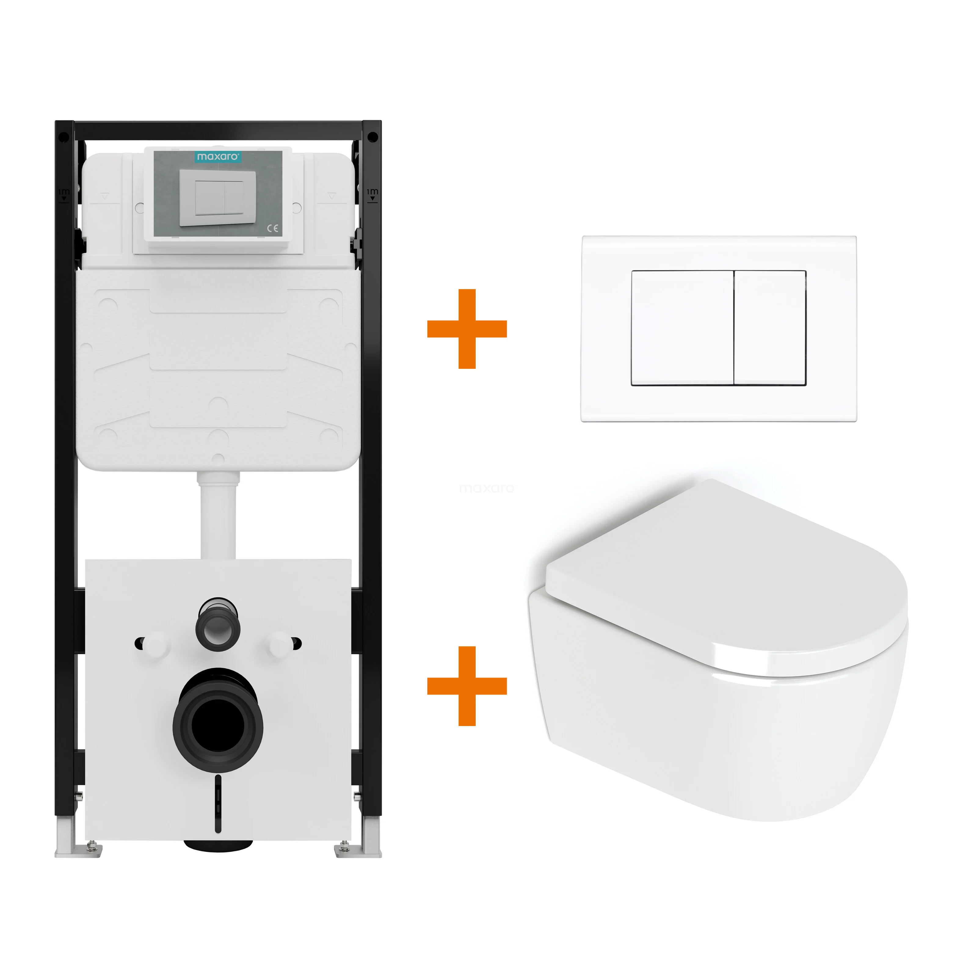 Met deze complete toiletset haal je in één keer alles in huis voor een stijlvol, functioneel en betaalbaar hangtoilet. De set bevat een hoogglans wit Senza hangtoilet, een softclose toiletzitting, het hoogwaardige Maxaro FLush Slim Pro-inbouwreservoir en een strak vormgegeven bedieningspaneel. Dankzij de perfecte afstemming tussen de onderdelen geniet je van optimale prestaties en comfort, zonder onnodige kosten.