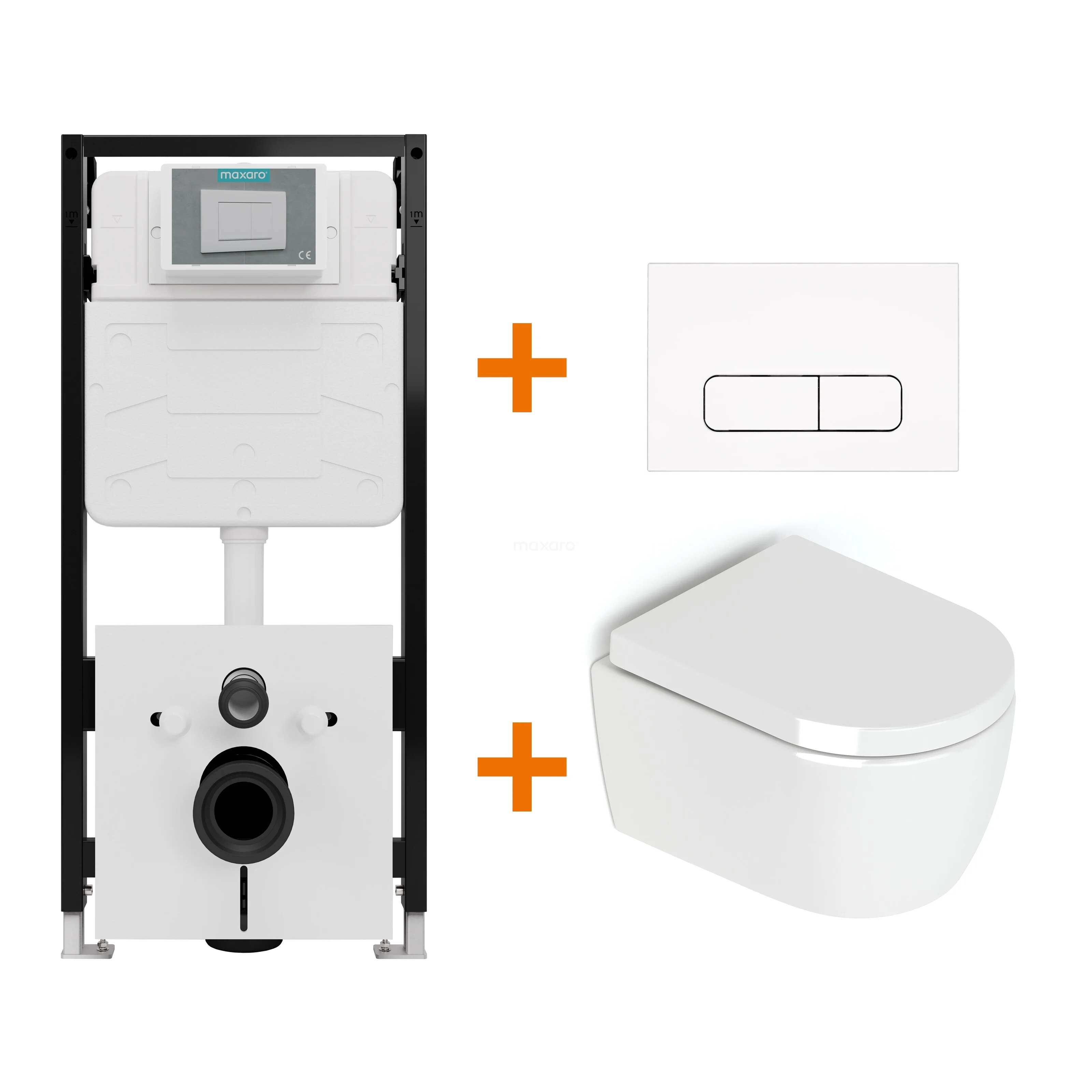 With this complete toilet set, you bring home everything at once for a stylish, functional, and affordable wall-hung toilet. The set includes a high-gloss white Senza wall-hung toilet, a soft-close toilet seat, the high-quality Maxaro Flush Slim Pro concealed cistern, and a sleekly designed control panel. Thanks to the perfect coordination between the components, you enjoy optimal performance and comfort without unnecessary costs.