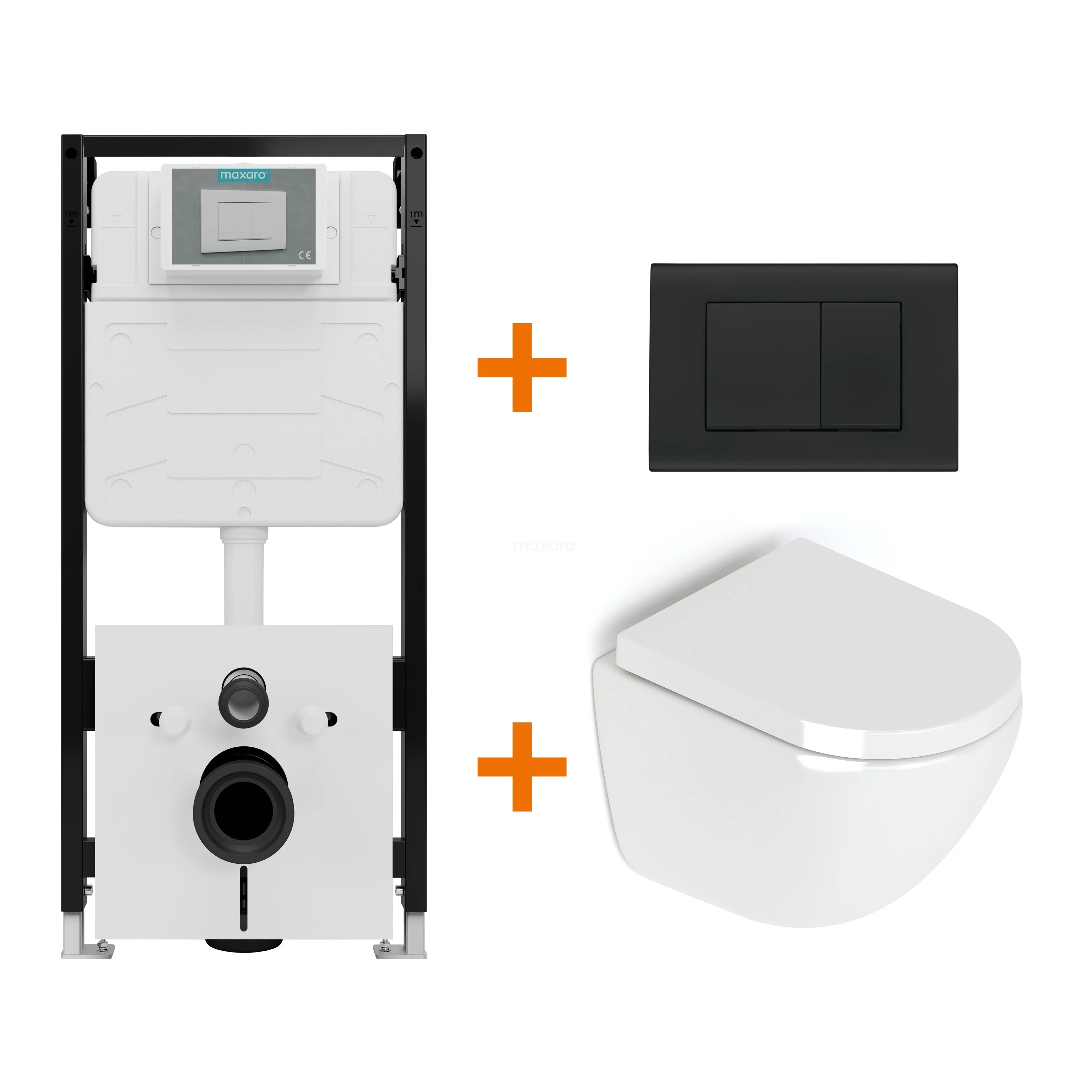 Toilet set High-gloss white without rim + Maxaro Flush Slim Pro concealed cistern with sound insulation