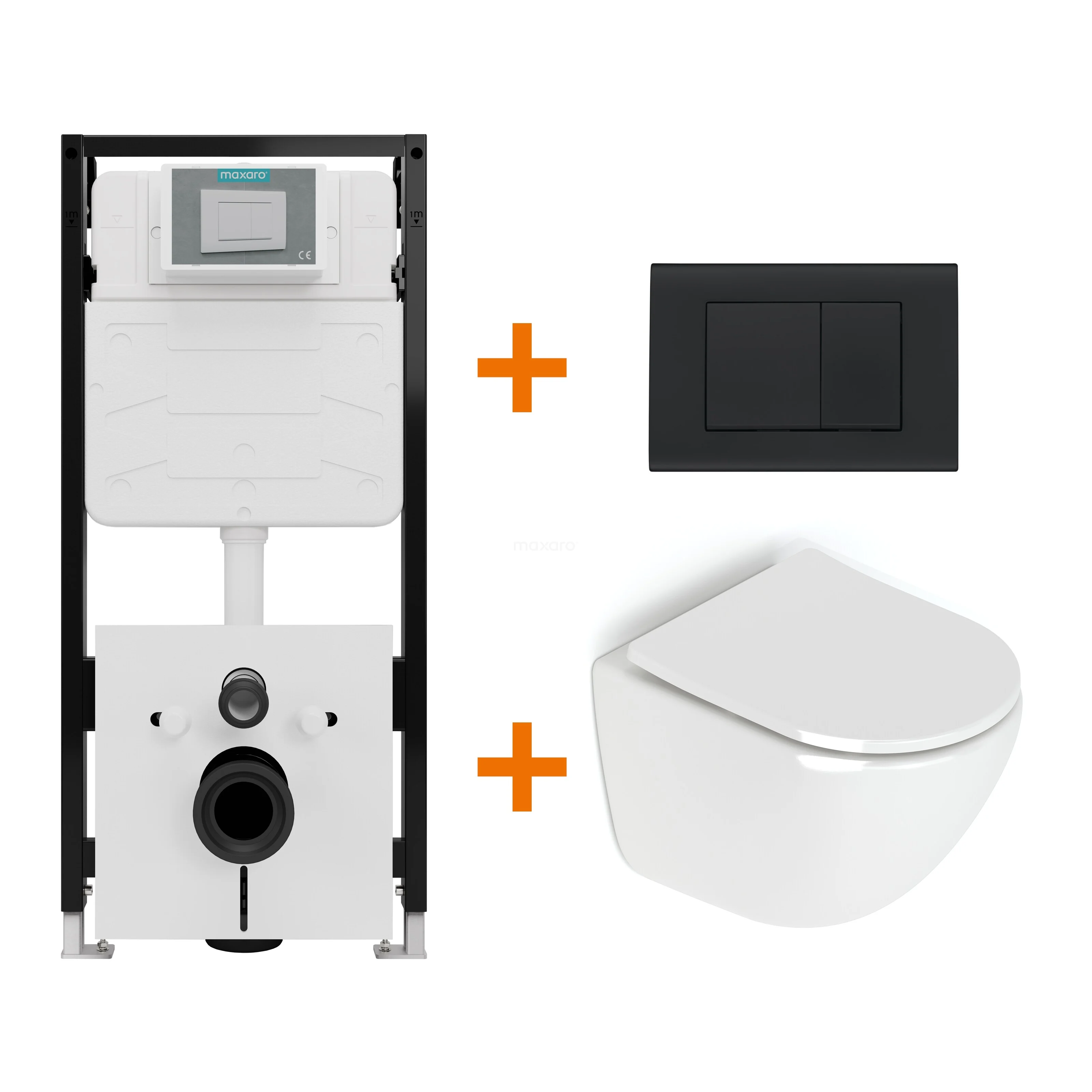 Toilet set High-gloss white without rim + Maxaro Flush Slim Pro concealed cistern with sound insulation
