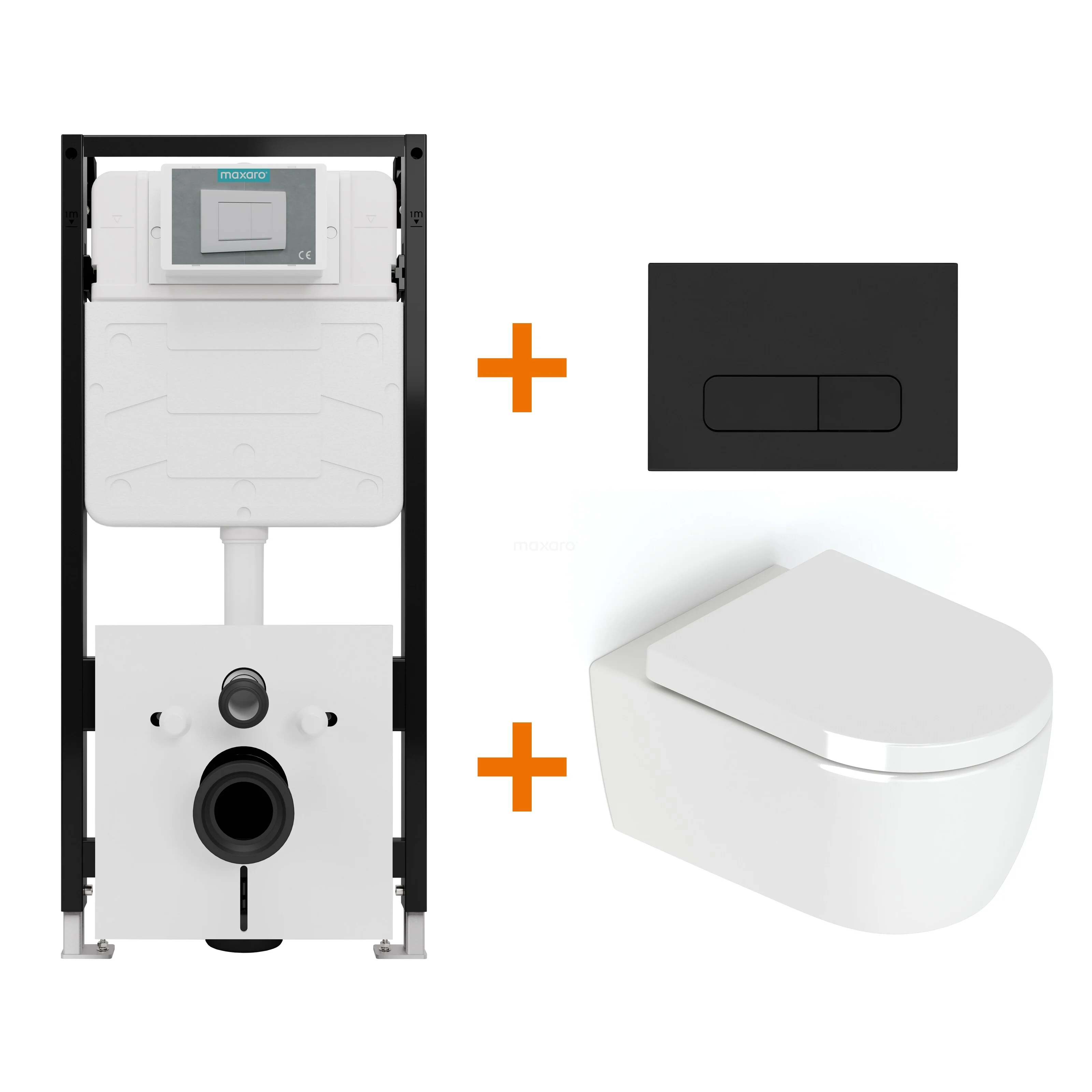 Toilet set High-gloss white without rim + Maxaro Flush Slim Pro concealed cistern with sound insulation TOI2655