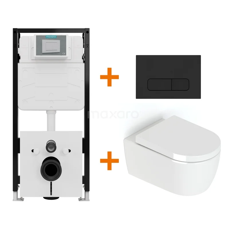 Toilet set High-gloss white without rim + Maxaro Flush Slim Pro concealed cistern with sound insulation