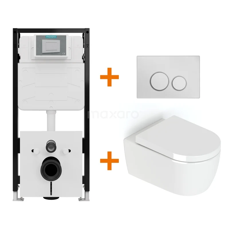 Toilet set High-gloss white without rim + Maxaro Flush Slim Pro concealed cistern with sound insulation