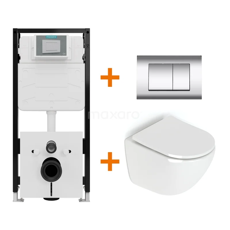 Toilet set High-gloss white without rim + Maxaro Flush Slim Pro concealed cistern with sound insulation