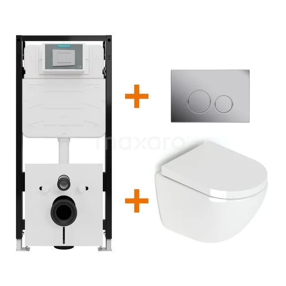 Toilet set High-gloss white without rim + Maxaro Flush Slim Pro concealed cistern with sound insulation