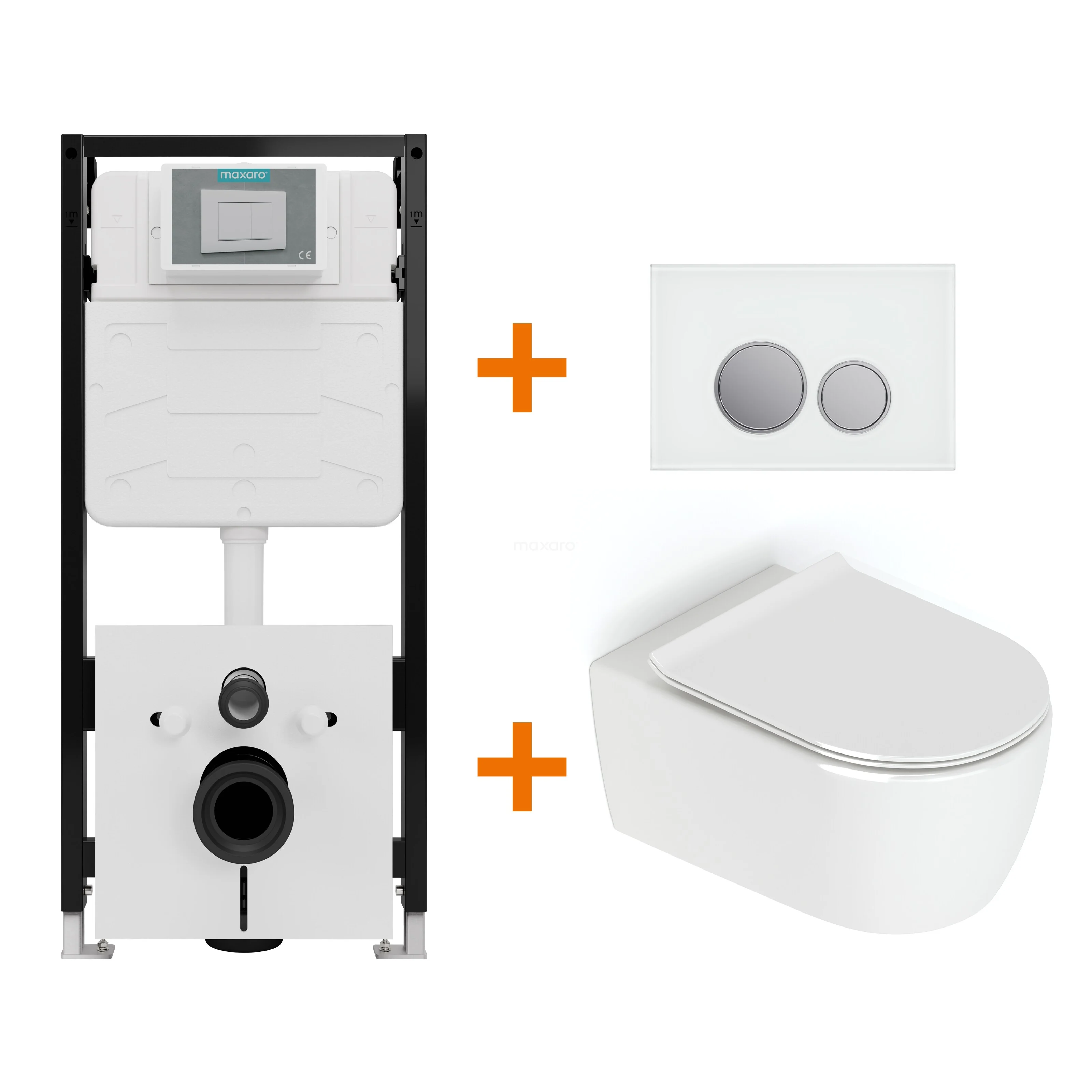 Toilet set High-gloss white without rim + Maxaro Flush Slim Pro concealed cistern with sound insulation