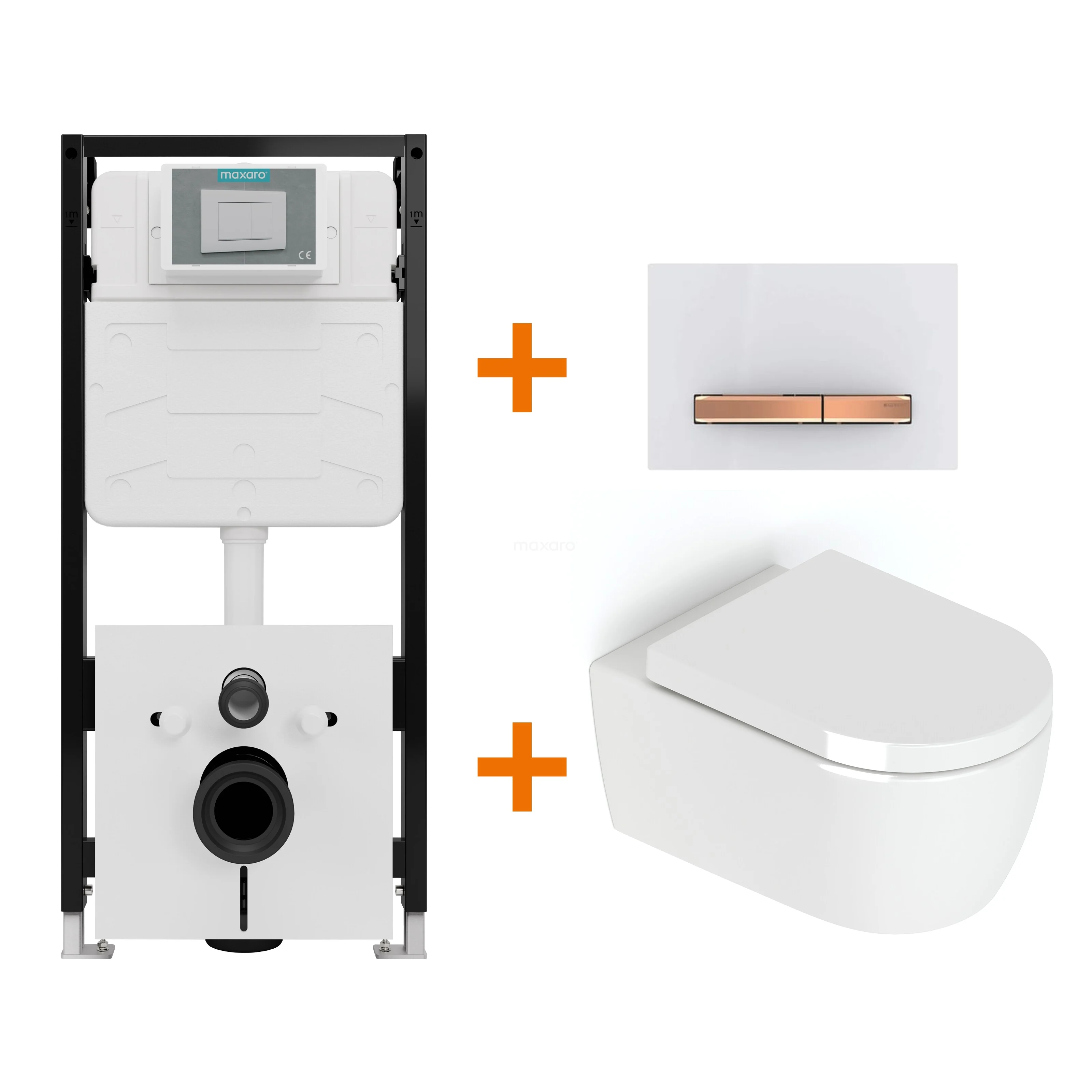 Toilet set High-gloss white without rim + Maxaro Flush Slim Pro concealed cistern with sound insulation