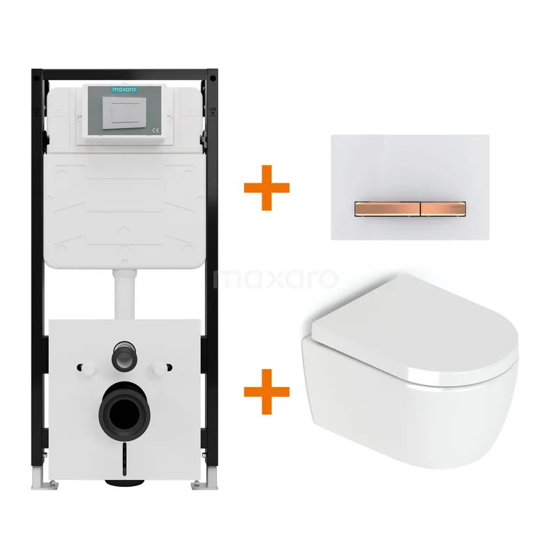 Toilet set High-gloss white without rim + Maxaro Flush Slim Pro concealed cistern with sound insulation