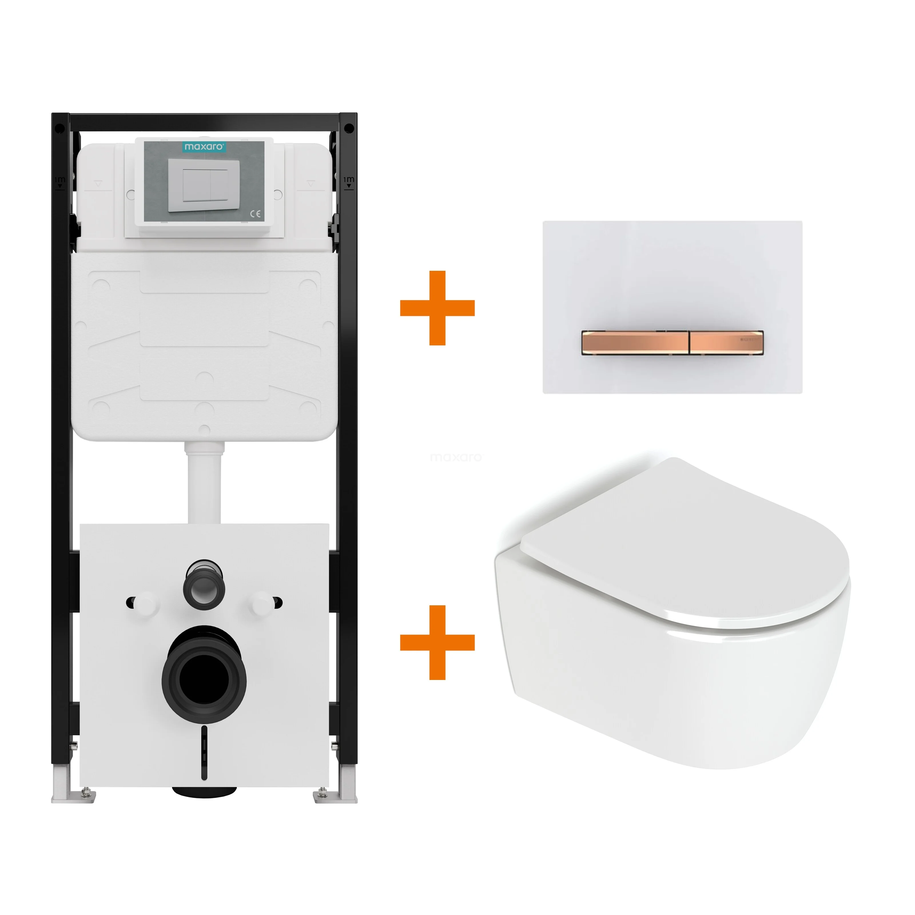 Toilet set High-gloss white without rim + Maxaro Flush Slim Pro concealed cistern with sound insulation
