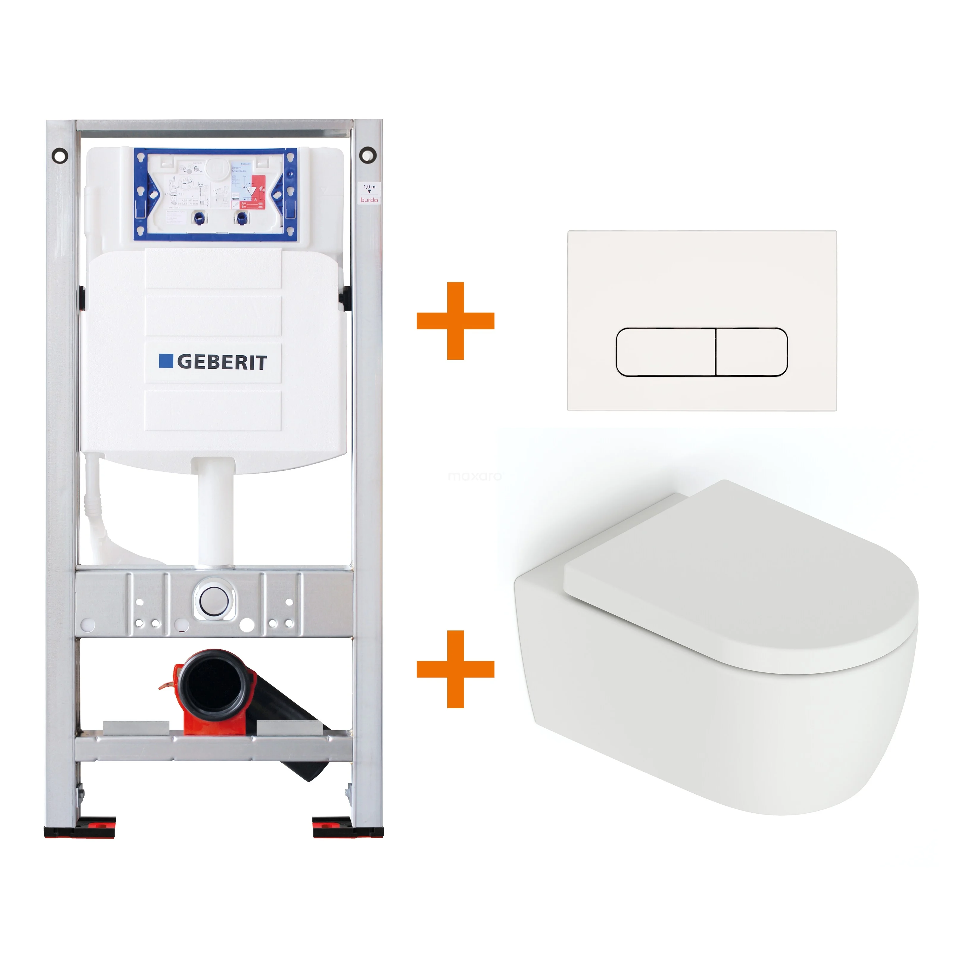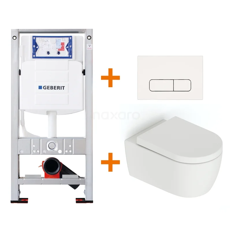 Toilet set Mat white without rim + Maxaro Flush Slim Pro concealed cistern with sound insulation