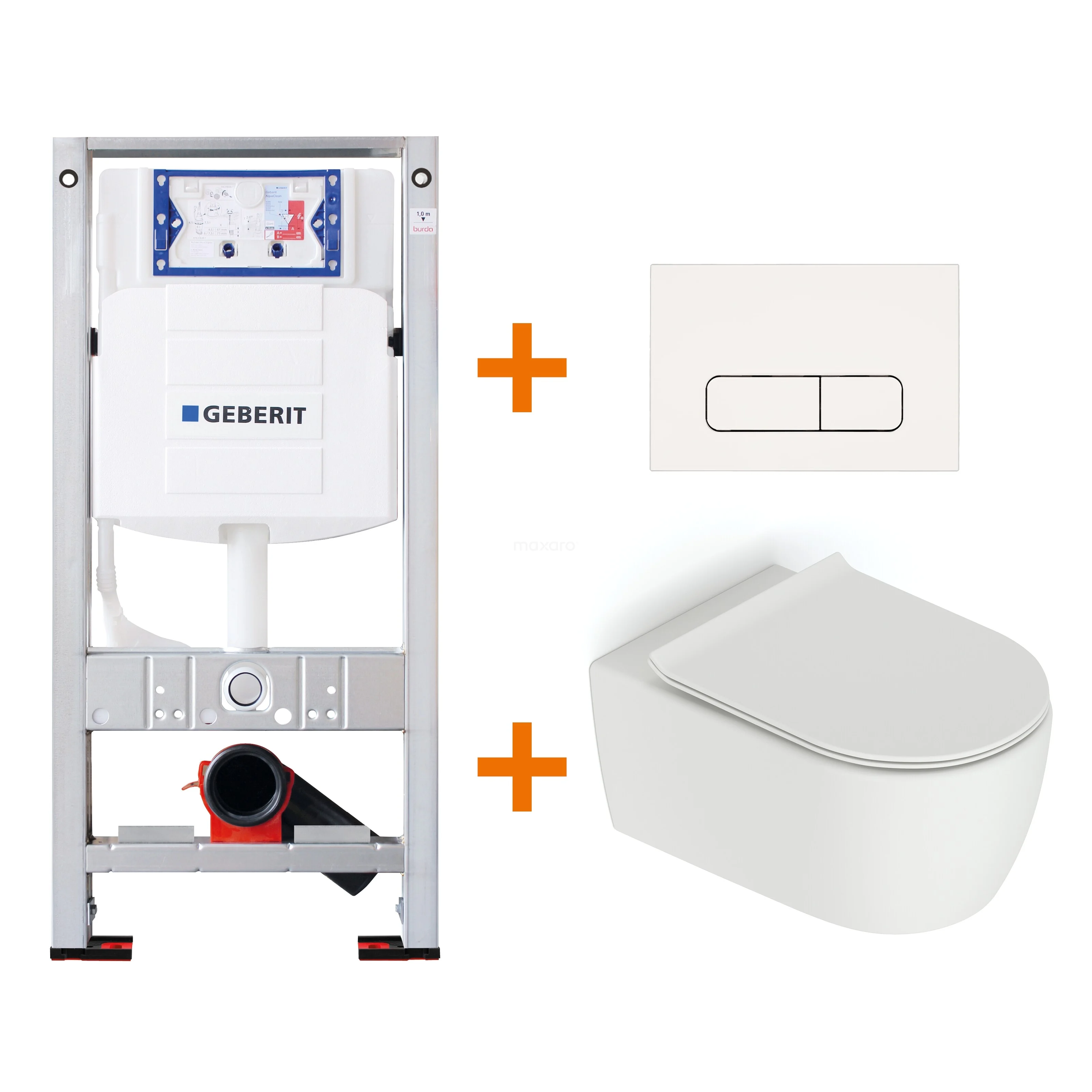 Toilet set Mat white without rim + Maxaro Flush Slim Pro concealed cistern with sound insulation