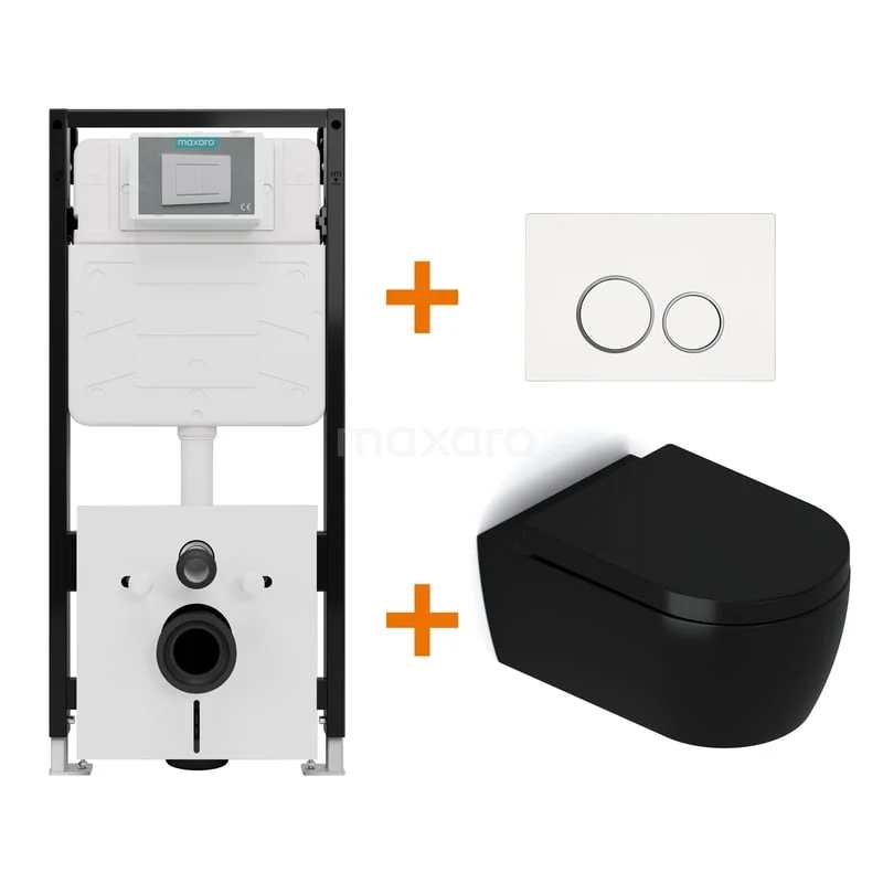 Toilet set Matt black with rim + Maxaro Flush Pro built-in cistern with sound insulation