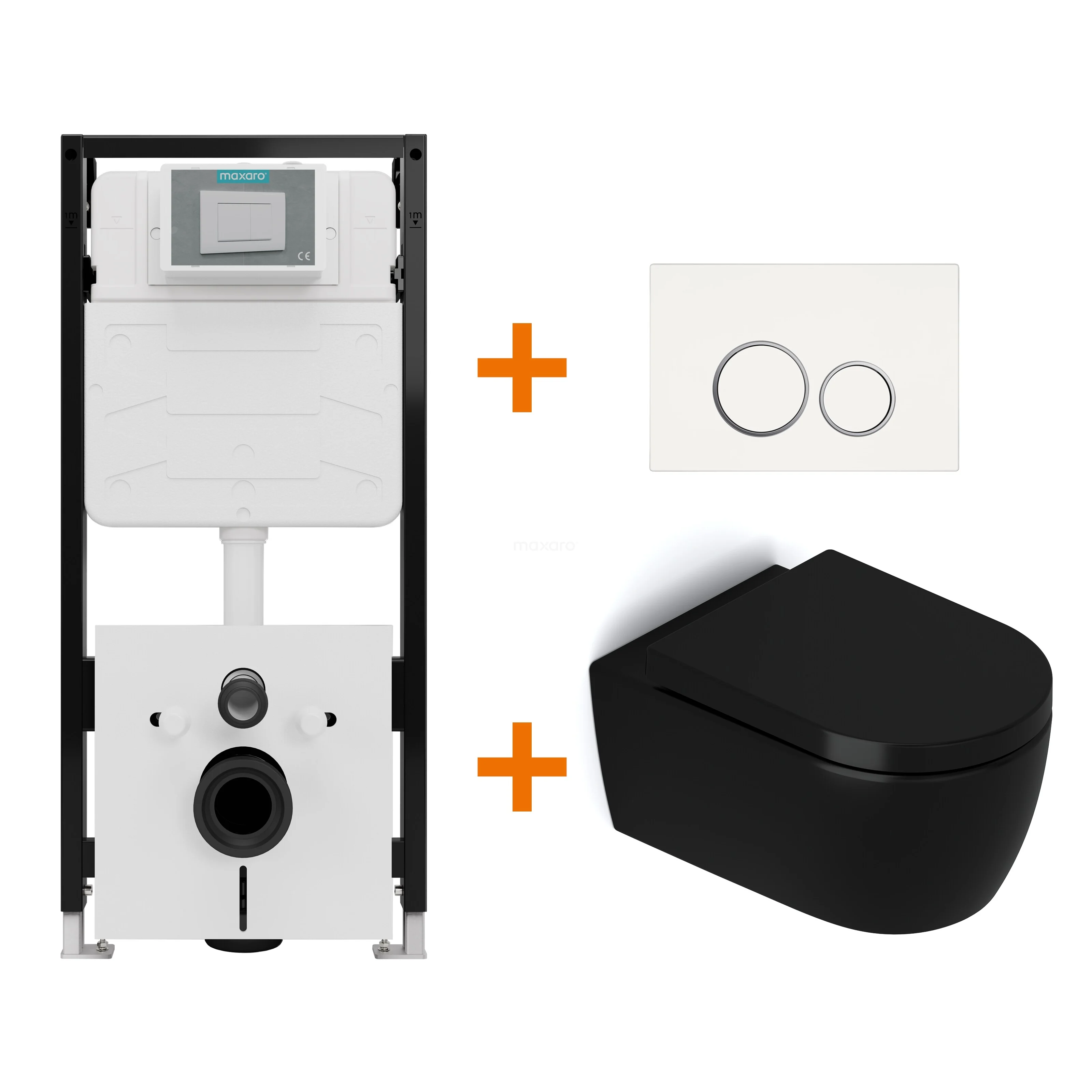 Toilet set Matt black without rim + Maxaro Flush Pro built-in cistern with sound insulation