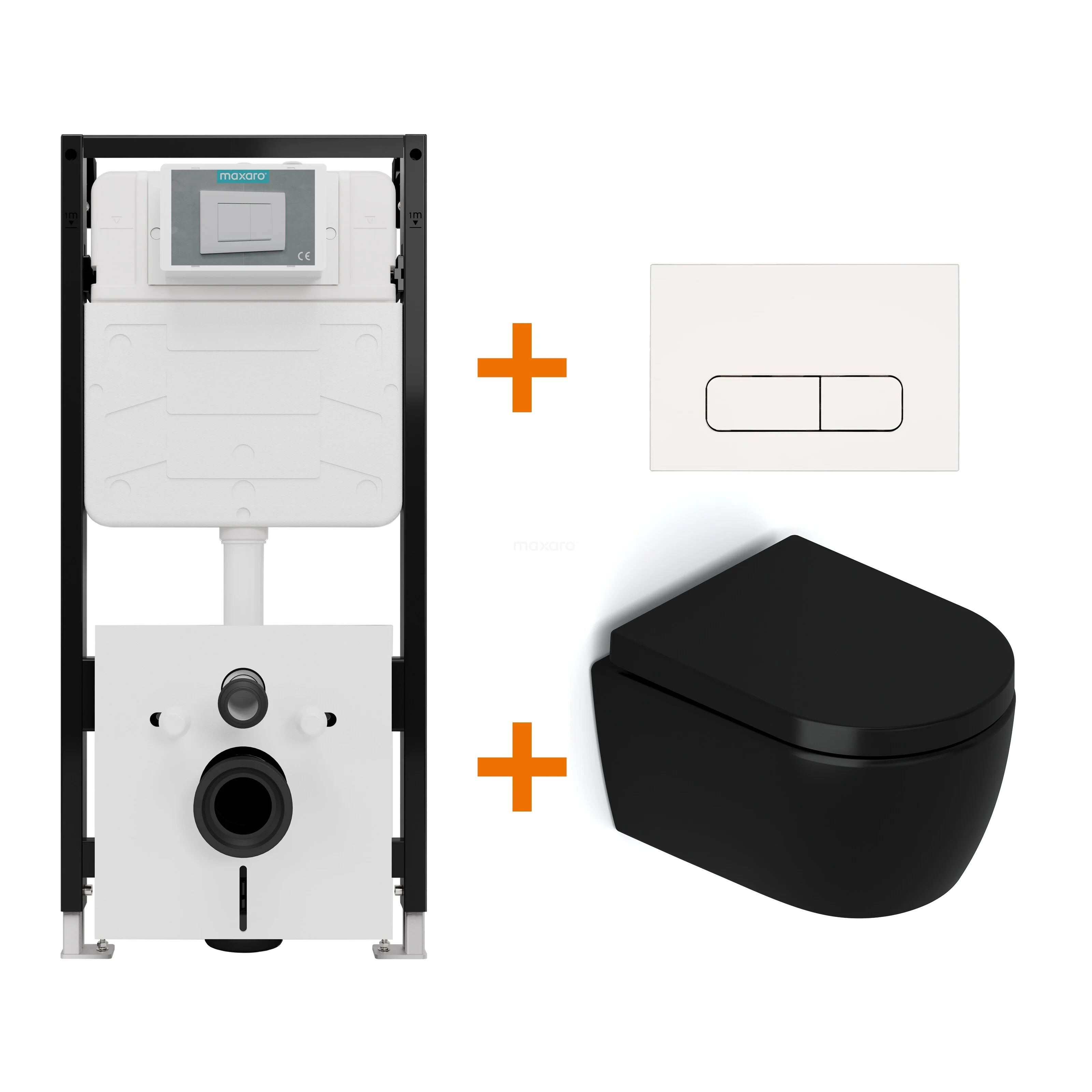 Toilet set Matt black without rim + Maxaro Flush Pro built-in cistern with sound insulation