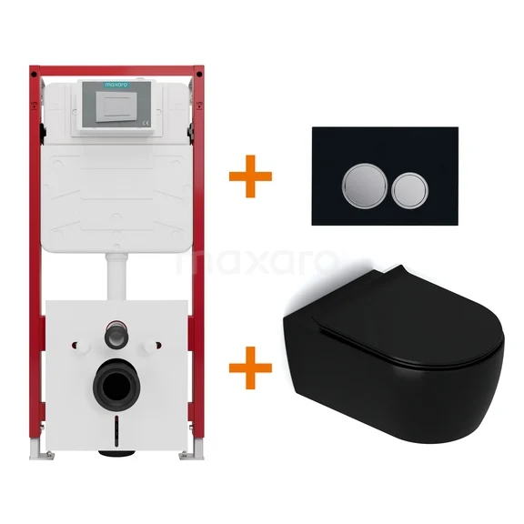 Toilet set Matte black with rim + Maxaro Flush concealed cisterns