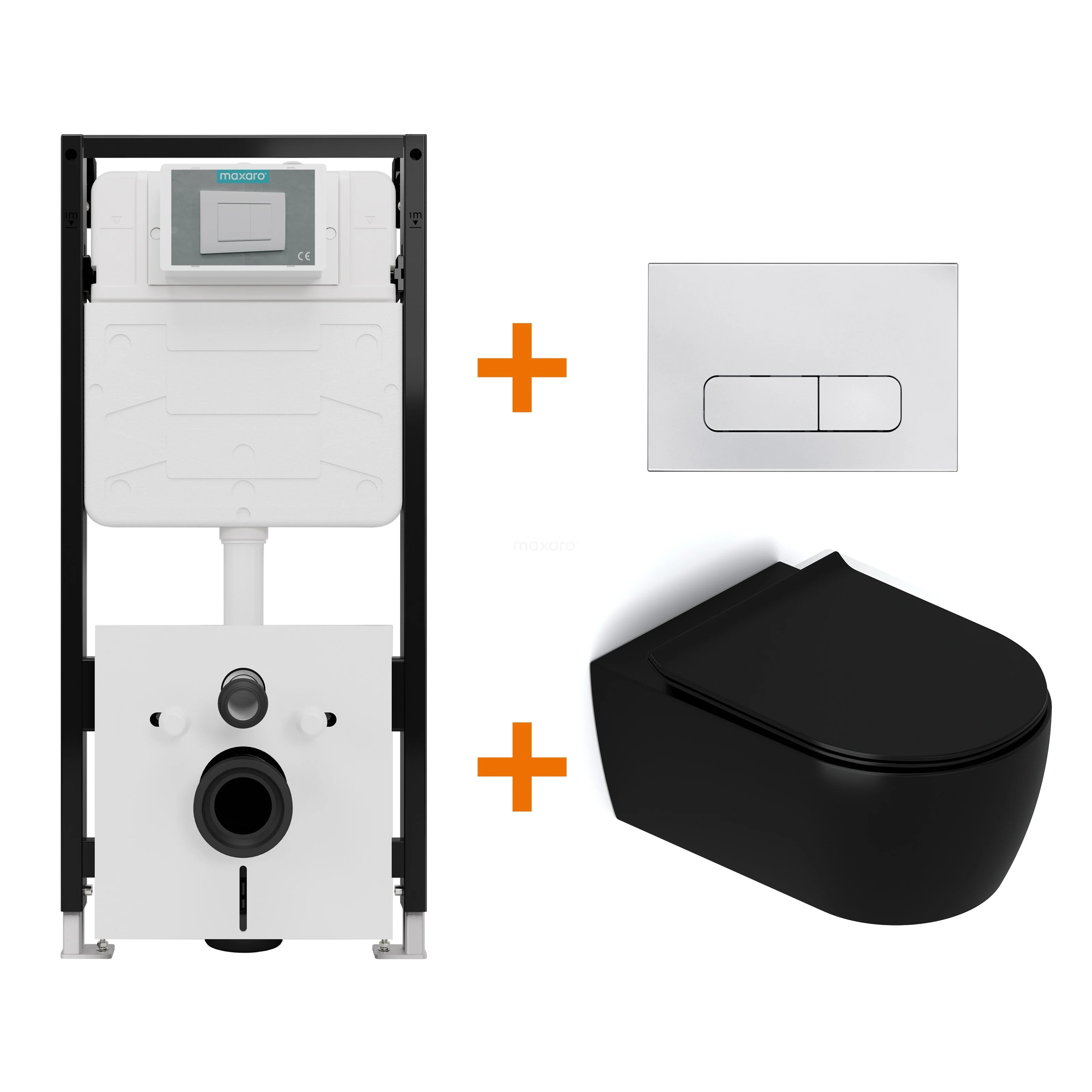 Toilet set Matte black with rim + Maxaro Flush Pro concealed cistern with sound insulation
