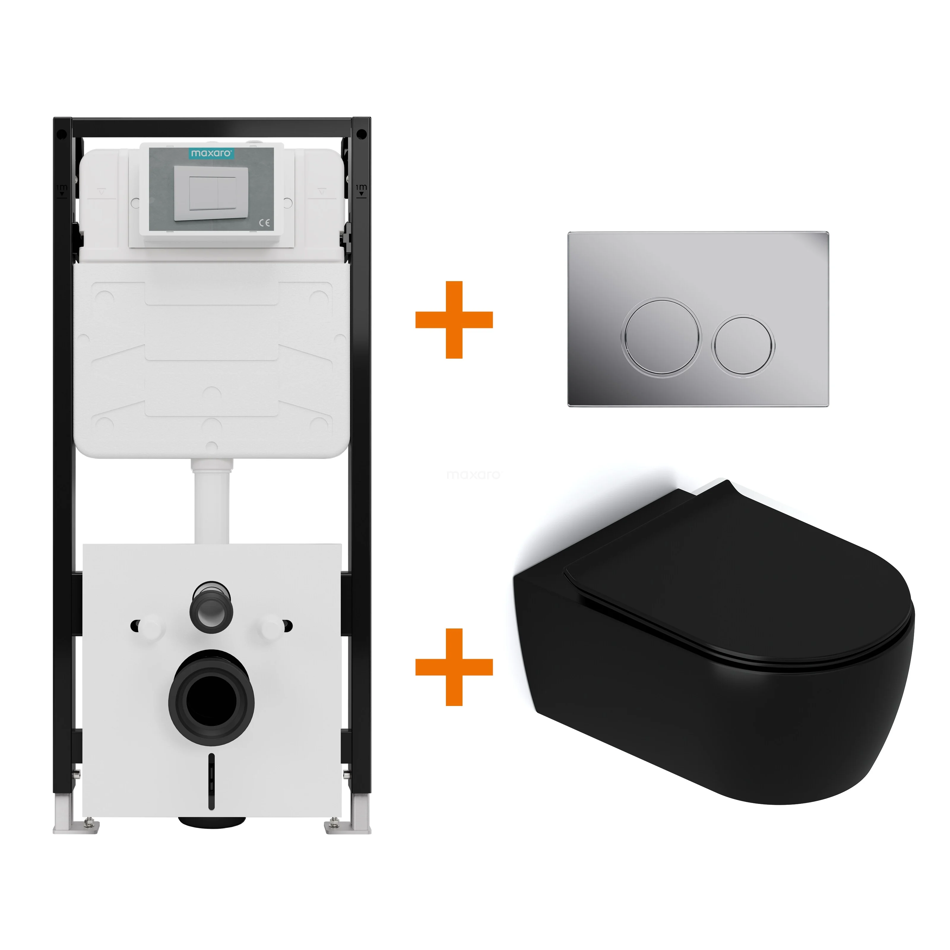 Toilet set Matte black with rim + Maxaro Flush Pro concealed cistern with sound insulation