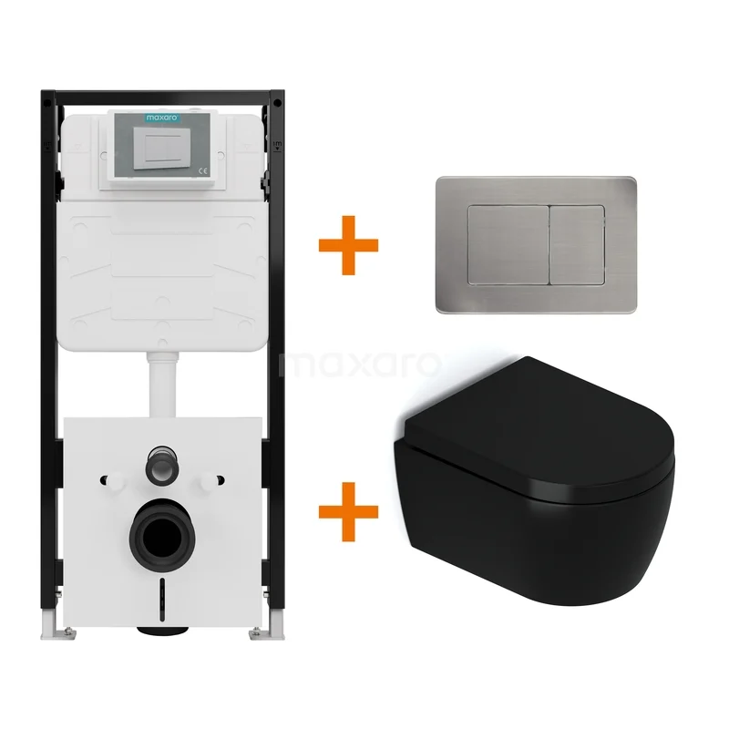 Met deze complete toiletset haal je in één keer alles in huis voor een stijlvol, functioneel en betaalbaar hangtoilet. De set bevat een mat zwart Classico hangtoilet, een softclose toiletzitting, het hoogwaardige Maxaro Flush Pro-inbouwreservoir en een strak vormgegeven bedieningspaneel. Dankzij de perfecte afstemming tussen de onderdelen geniet je van optimale prestaties en comfort, zonder onnodige kosten.