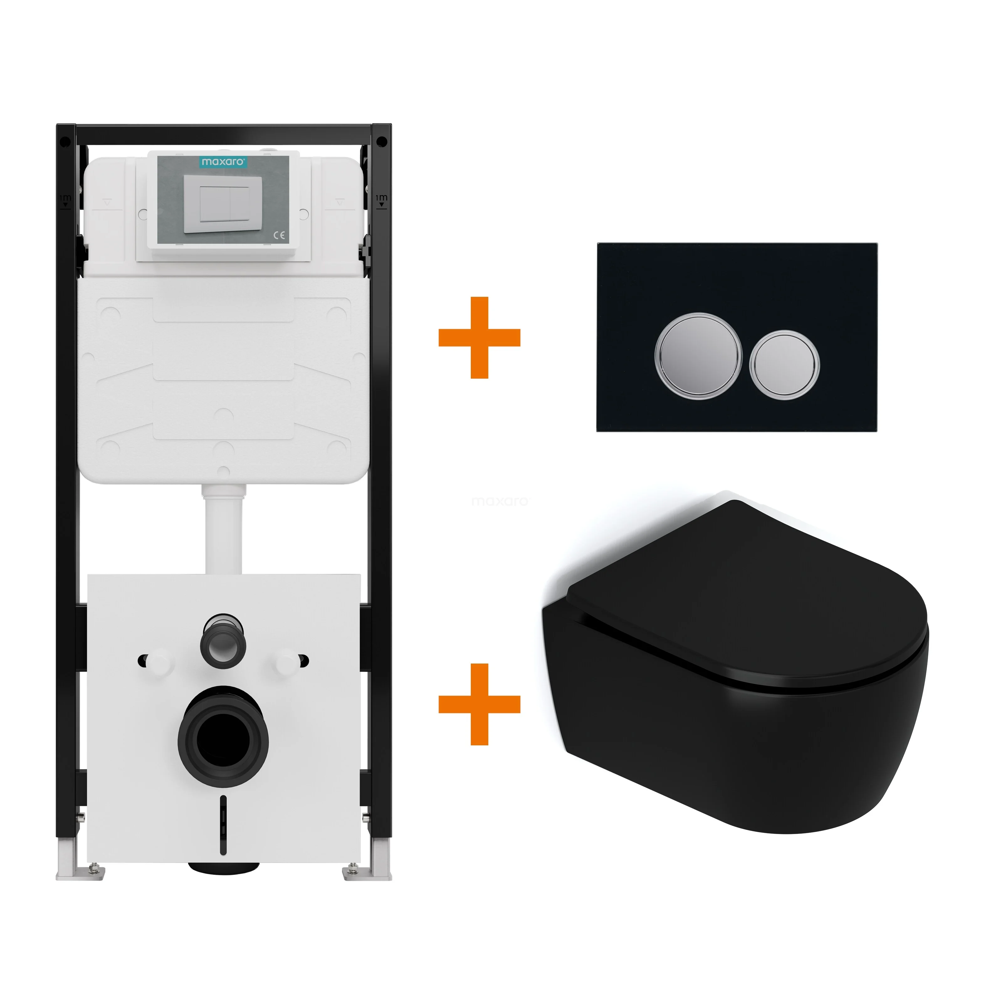 Toilet set Matte black with rim + Maxaro Flush Pro concealed cistern with sound insulation