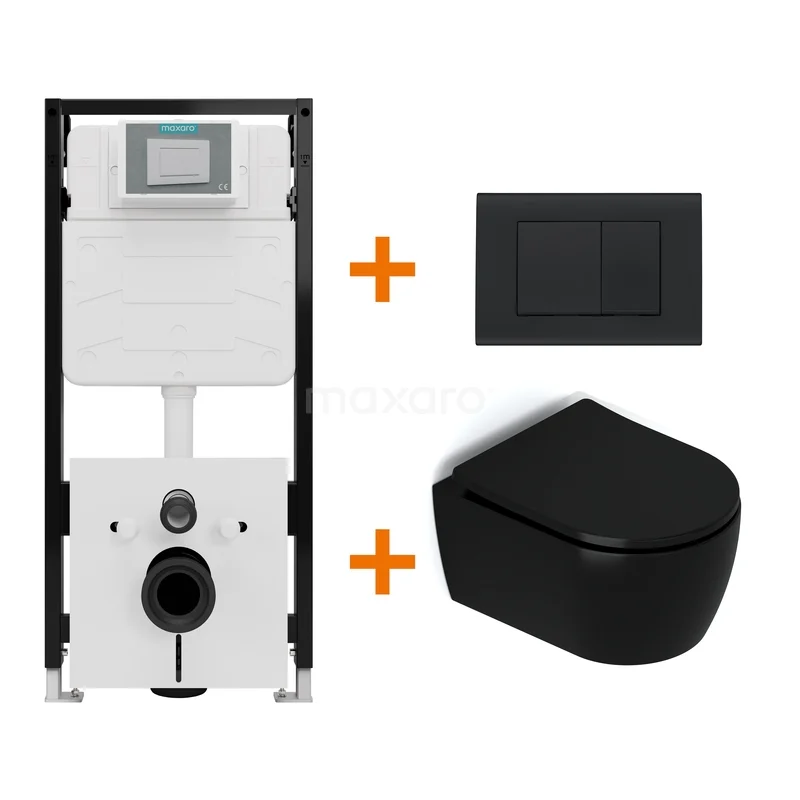 Toilet set Matte black with rim + Maxaro Flush Slim Pro concealed cistern with sound insulation