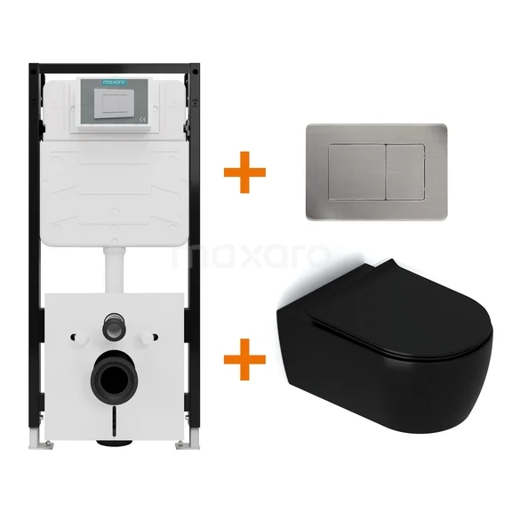 Toilet set Matte black with rim + Maxaro Flush Slim Pro concealed cistern with sound insulation