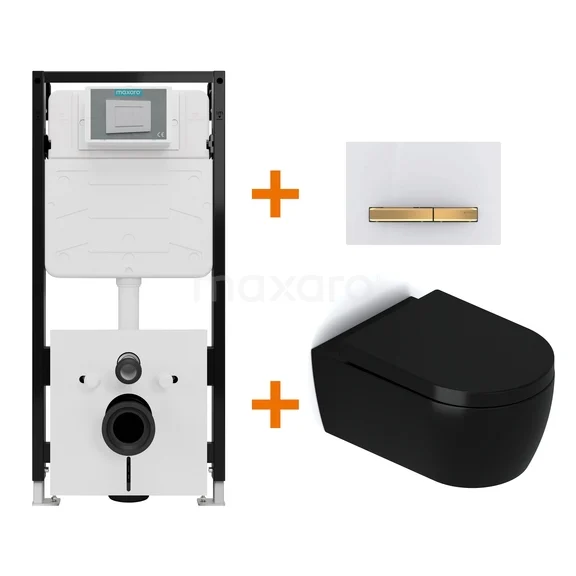 Toilet set Matte black with rim + Maxaro Flush Slim Pro concealed cistern with sound insulation