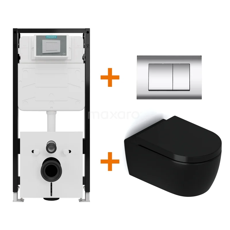 Toilet set Matte black without rim + Maxaro Flush Slim Pro concealed cistern with sound insulation