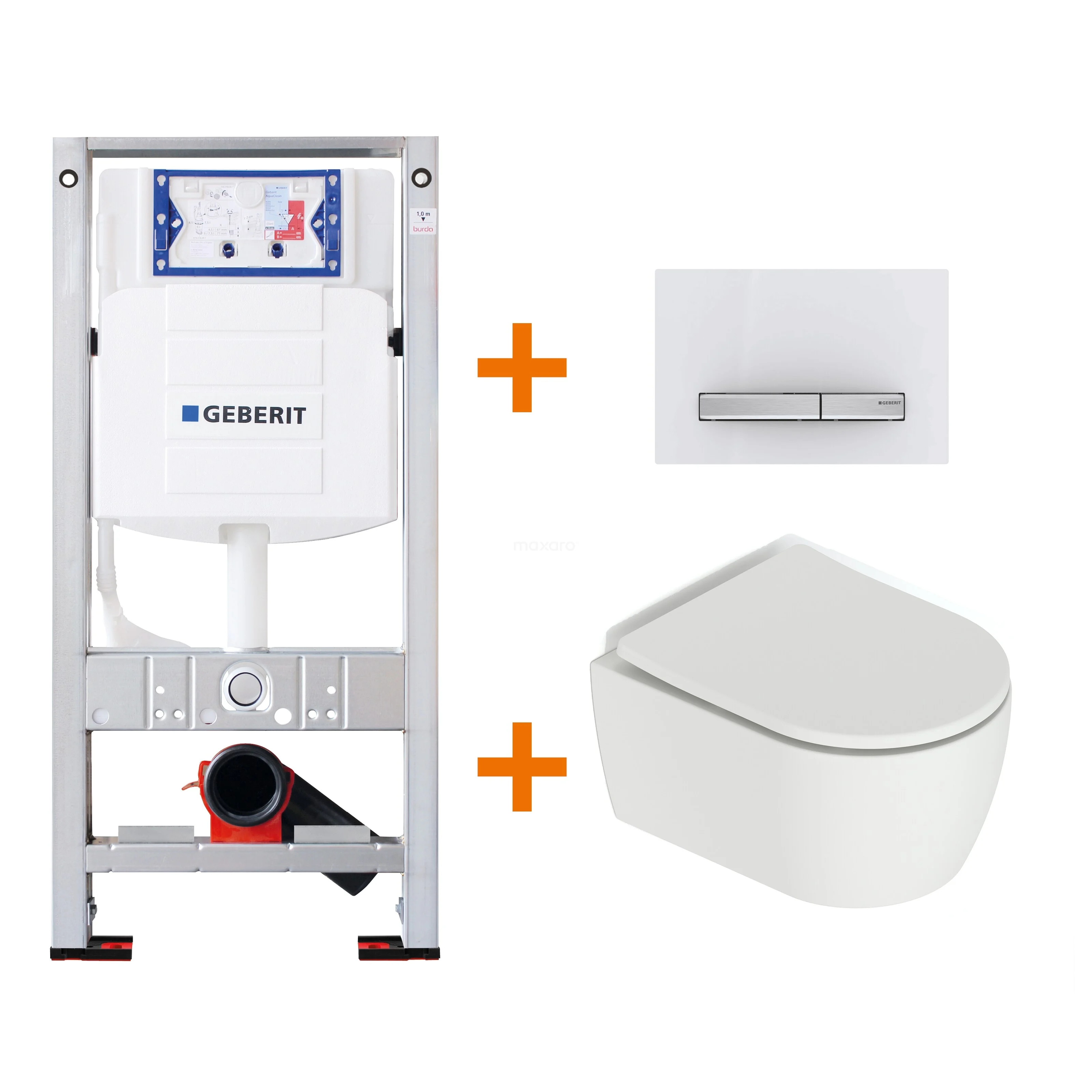 Toilet set Matte white Shortened with rim + Geberit UP320 concealed cistern