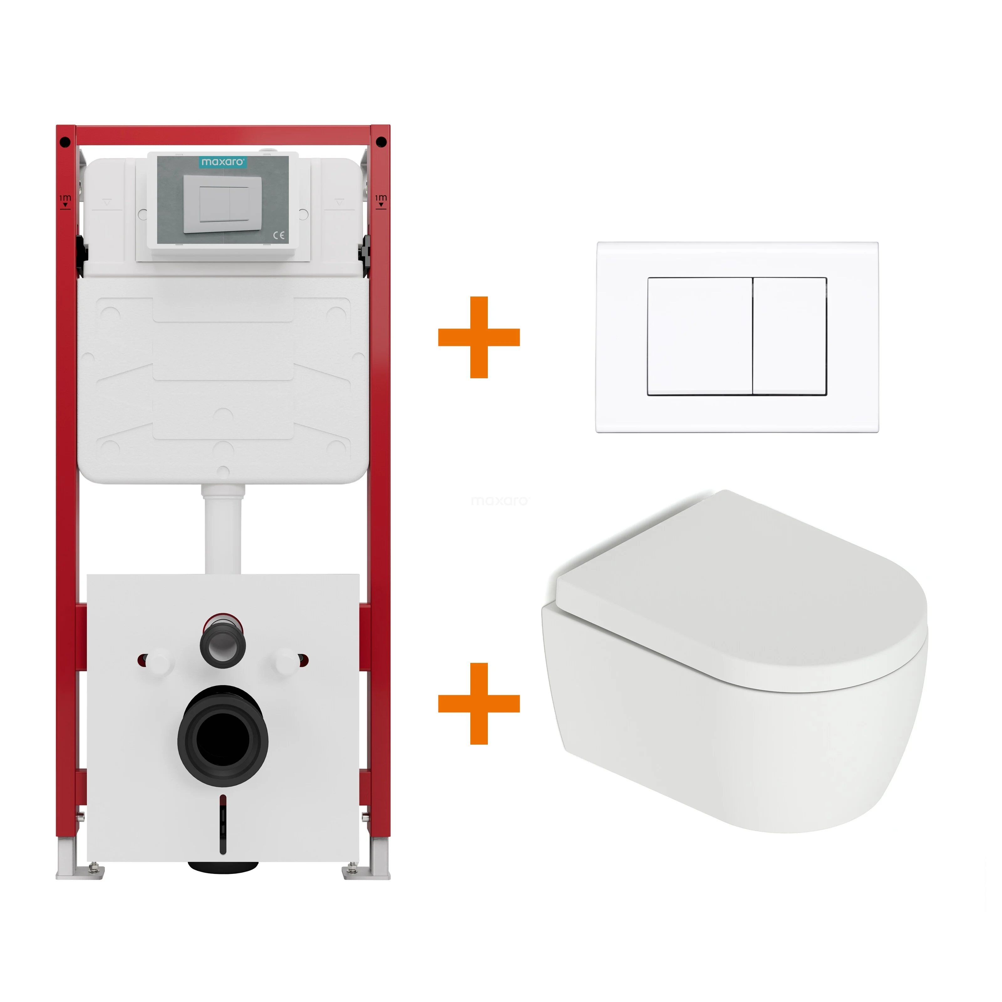 Met deze complete toiletset haal je in één keer alles in huis voor een stijlvol, functioneel en betaalbaar hangtoilet. De set bevat een mat wit Classico hangtoilet, een softclose toiletzitting, het hoogwaardige Maxaro Flush-inbouwreservoir en een strak vormgegeven bedieningspaneel. Dankzij de perfecte afstemming tussen de onderdelen geniet je van optimale prestaties en comfort, zonder onnodige kosten.