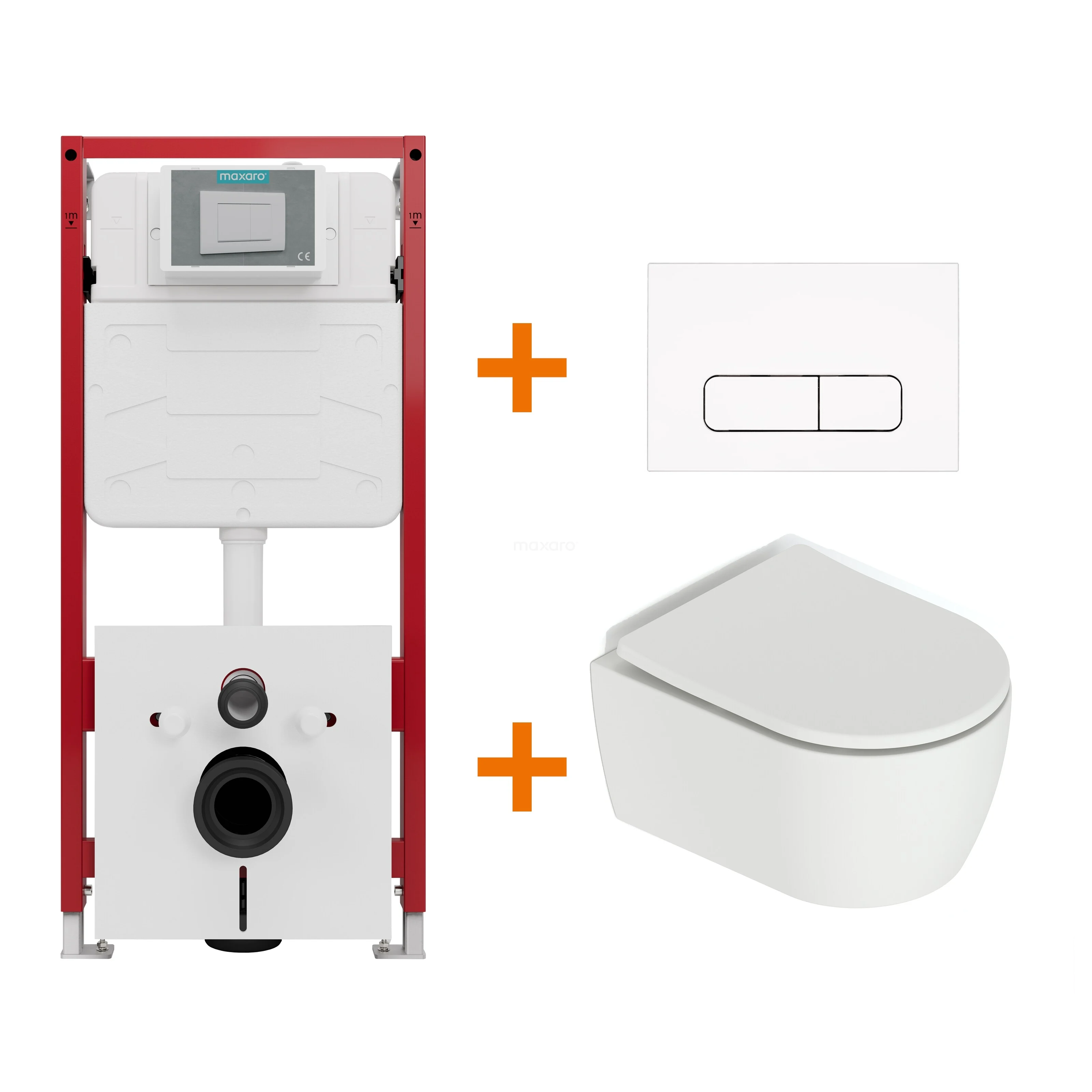 Met deze complete toiletset haal je in één keer alles in huis voor een stijlvol, functioneel en betaalbaar hangtoilet. De set bevat een mat wit Classico hangtoilet, een softclose toiletzitting, het hoogwaardige Maxaro Flush-inbouwreservoir en een strak vormgegeven bedieningspaneel. Dankzij de perfecte afstemming tussen de onderdelen geniet je van optimale prestaties en comfort, zonder onnodige kosten.