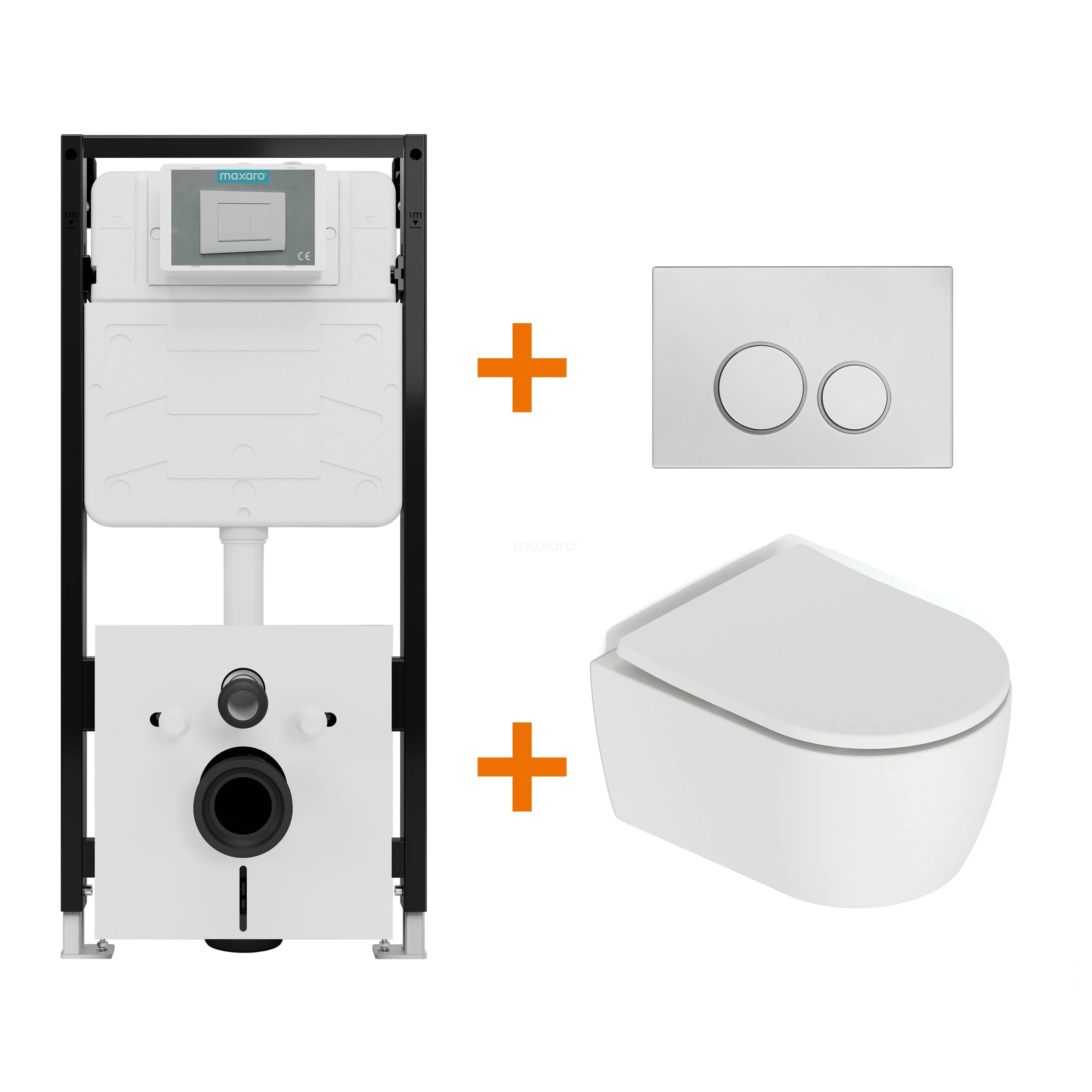 Met deze complete toiletset haal je in één keer alles in huis voor een stijlvol, functioneel en betaalbaar hangtoilet. De set bevat een mat wit Classico hangtoilet, een softclose toiletzitting, het hoogwaardige Maxaro Flush Pro-inbouwreservoir en een strak vormgegeven bedieningspaneel. Dankzij de perfecte afstemming tussen de onderdelen geniet je van optimale prestaties en comfort, zonder onnodige kosten.