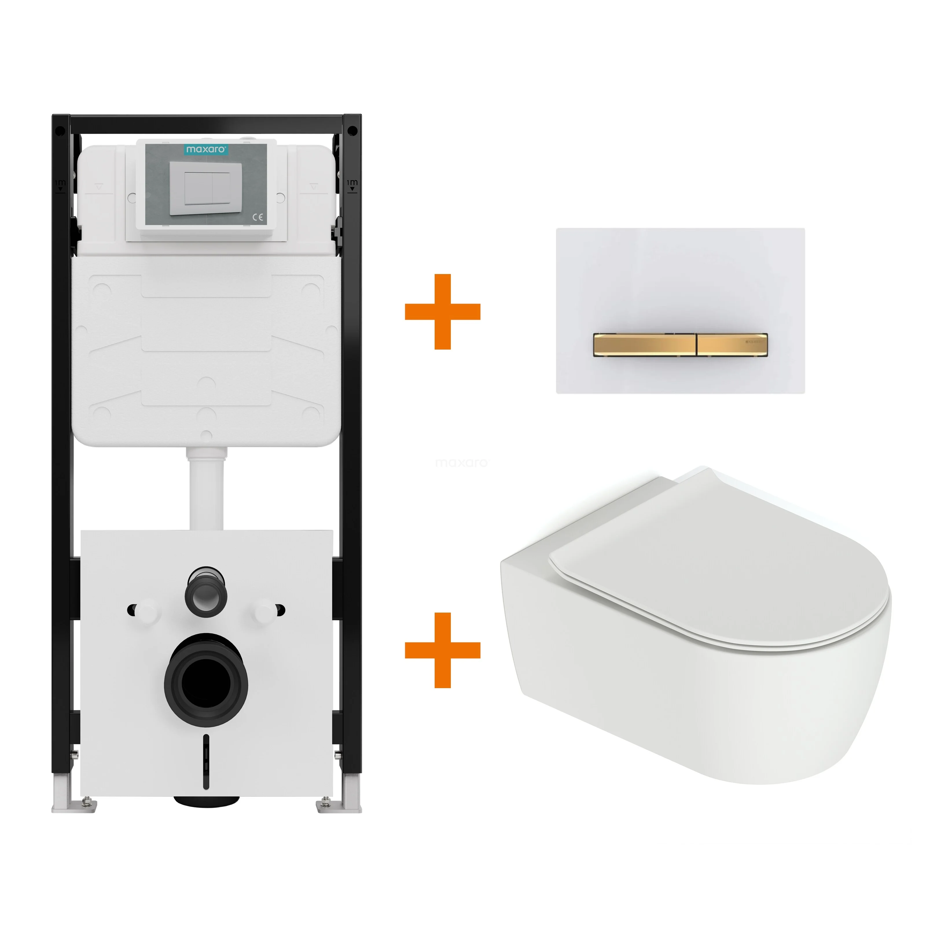 Toilet set Matte white with rim + Maxaro Flush Pro concealed cistern with sound insulation