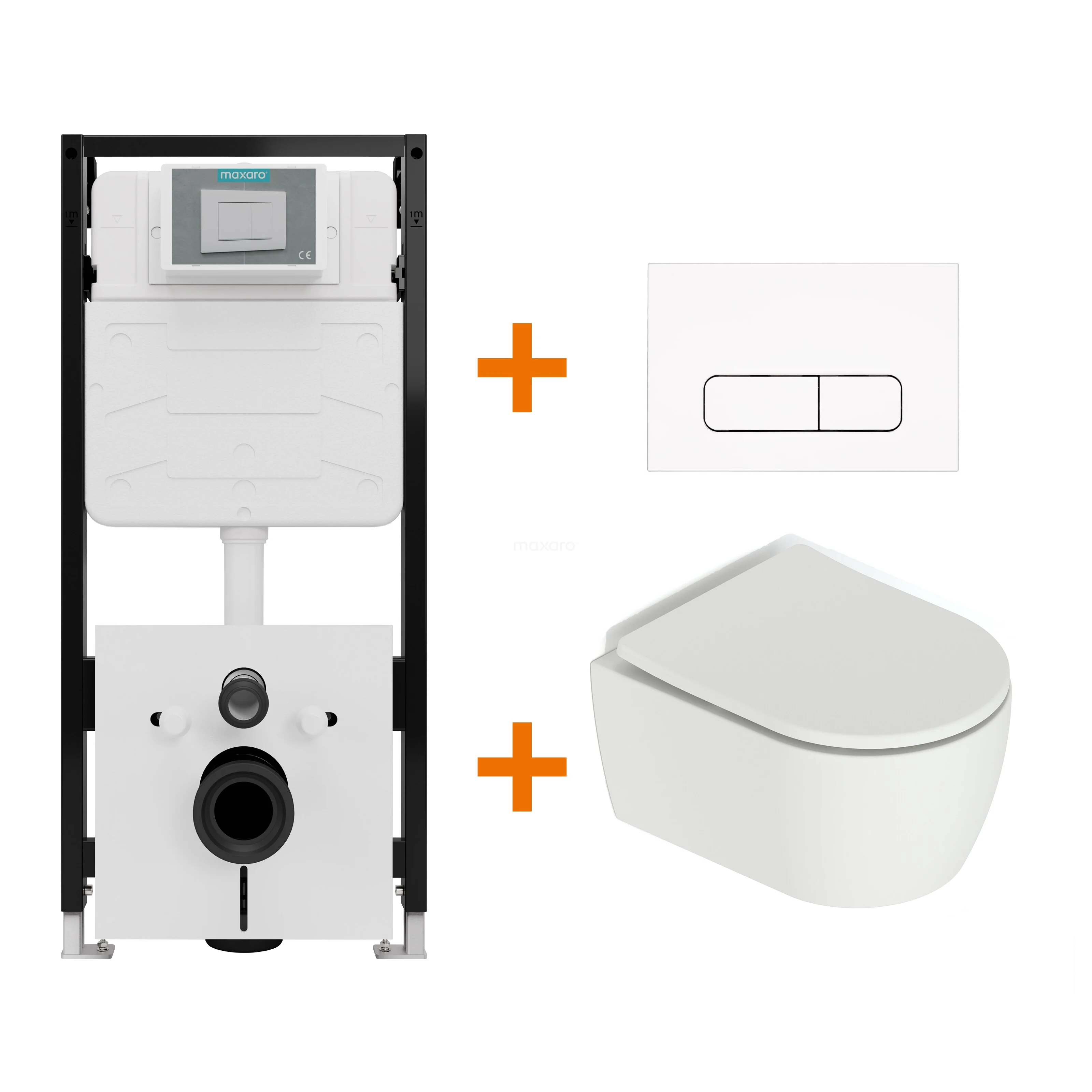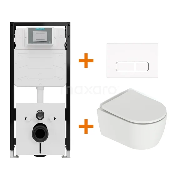 Toilet set Matte white with rim + Maxaro Flush Slim Pro concealed cistern with sound insulation