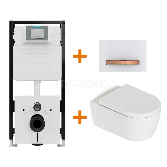 Toilet set Matte white with rim + Maxaro Flush Slim Pro concealed cistern with sound insulation