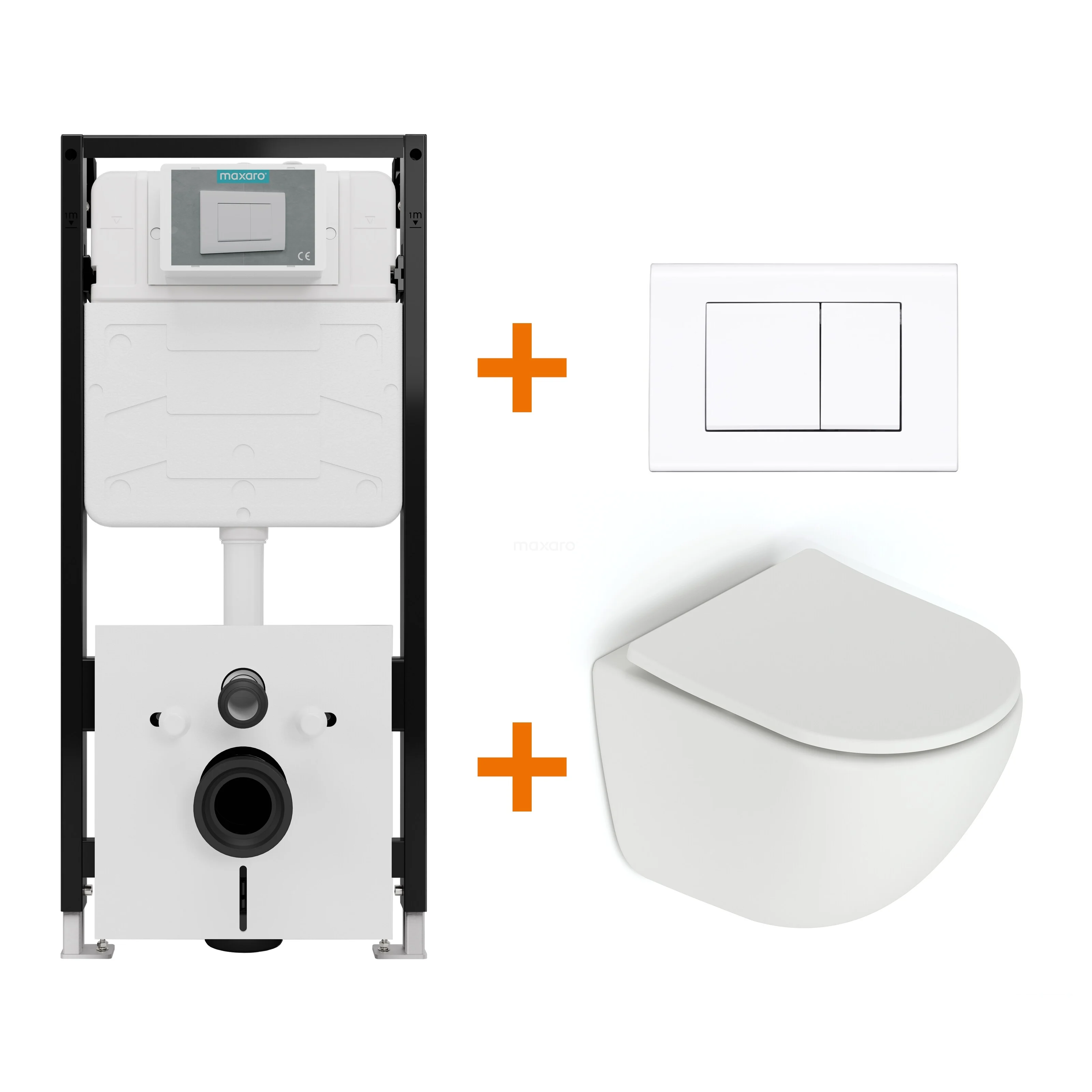 Toilet set Matte white without rim + Maxaro Flush Pro concealed cistern with sound insulation