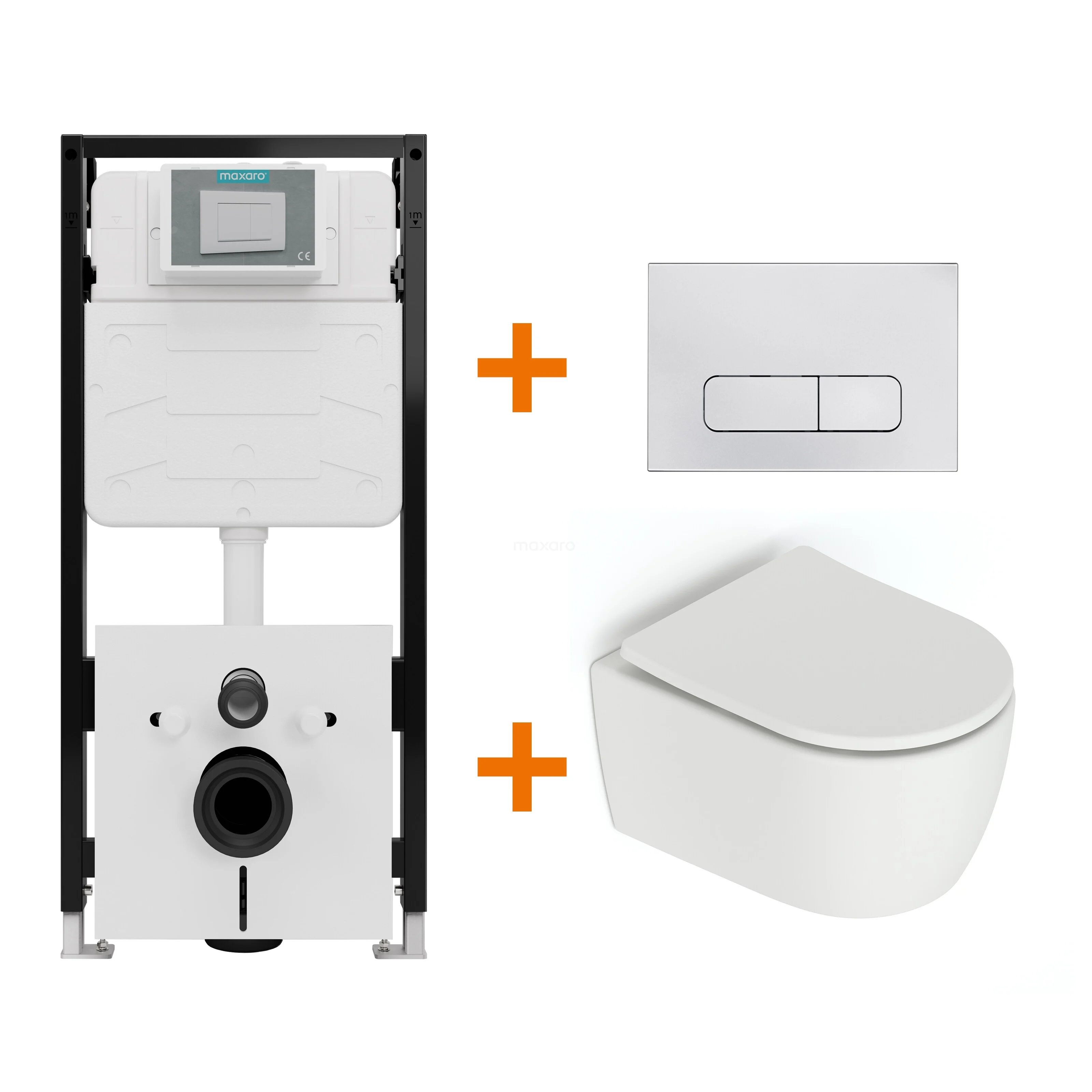 Toilet set Matte white without rim + Maxaro Flush Pro concealed cistern with sound insulation